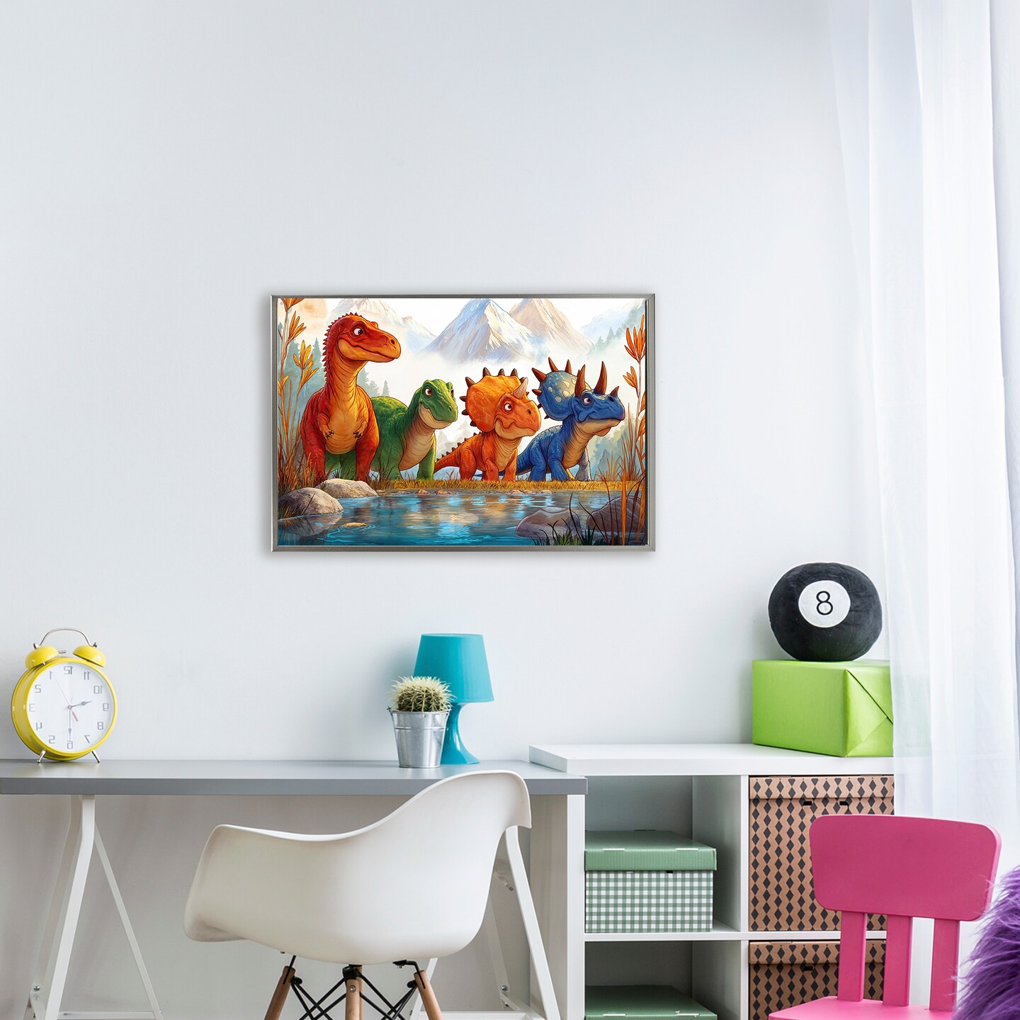 Stupell Industries Four Dinos By The Pond Floating Frame, design by Wumples