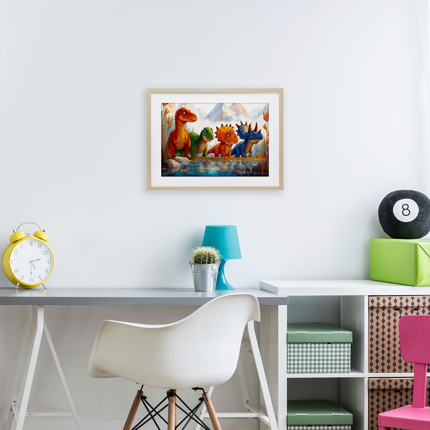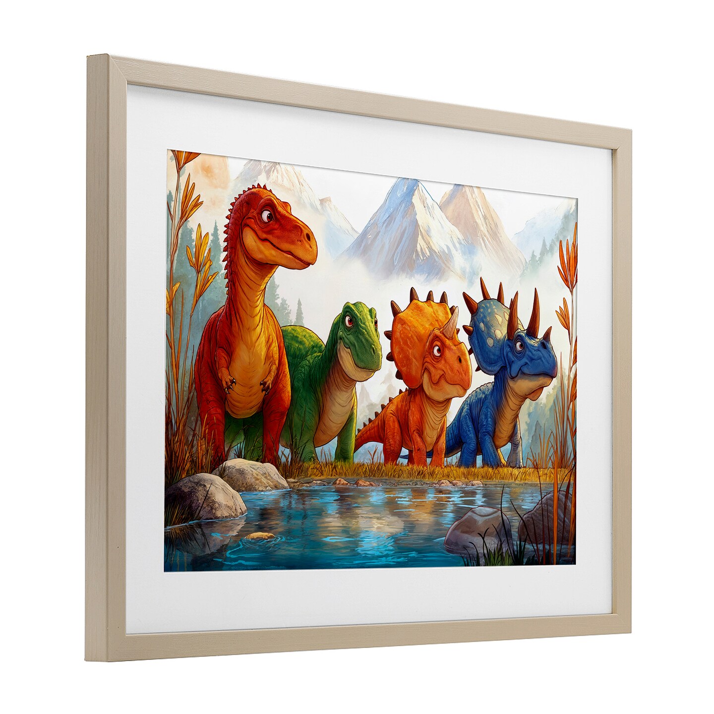 Stupell Industries Four Dinos By The Pond Framed Print Under Glass, design by Wumples