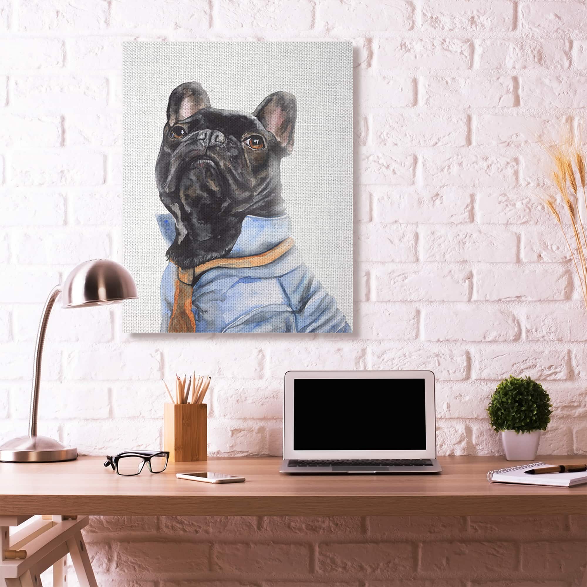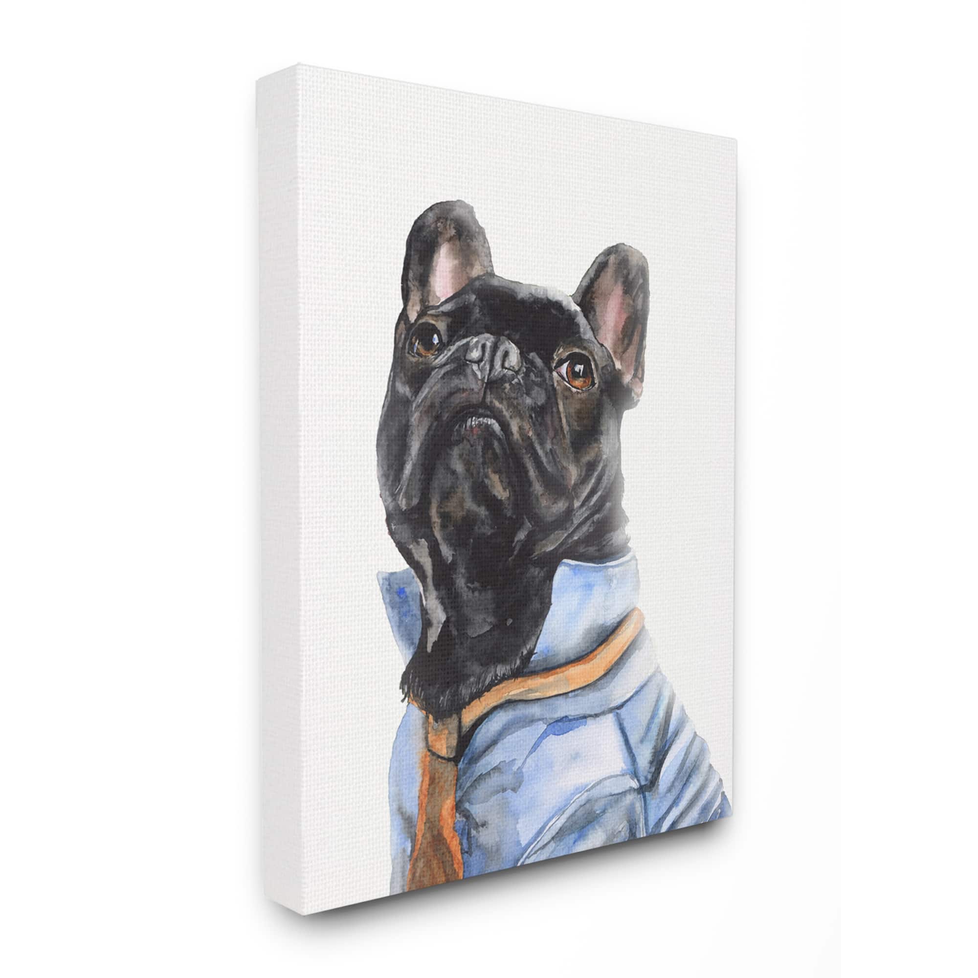Stupell Industries French Bulldog Fashion Dog Pet Animal Watercolor Painting Canvas Wall Art