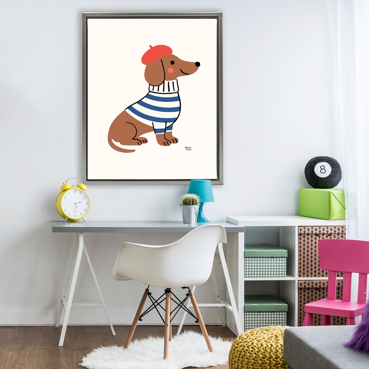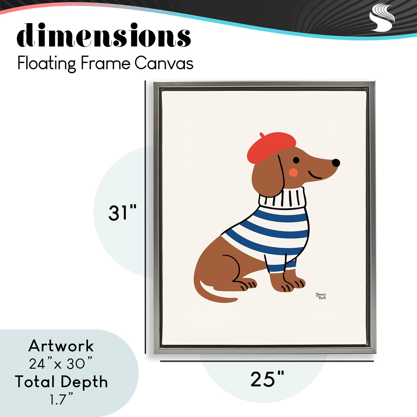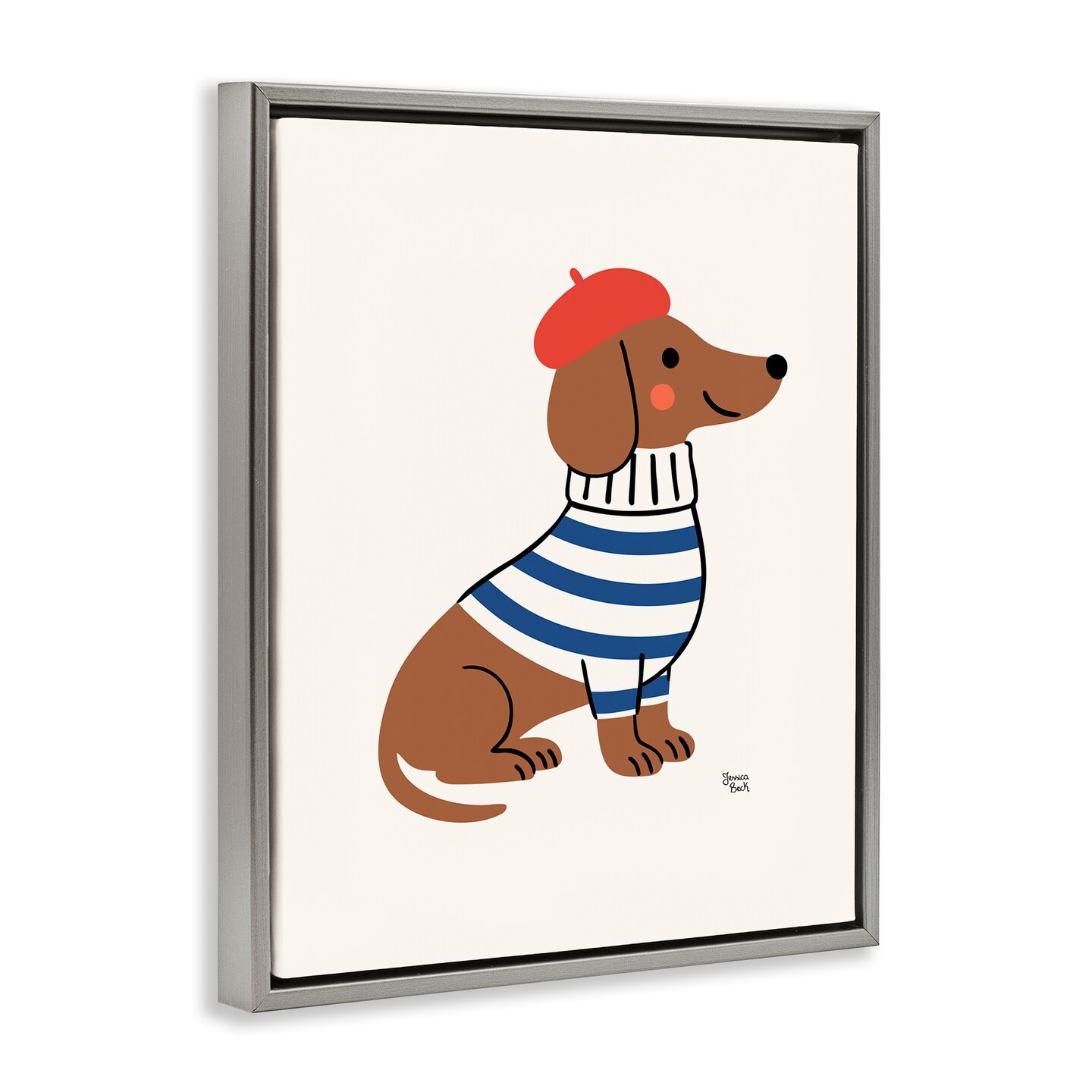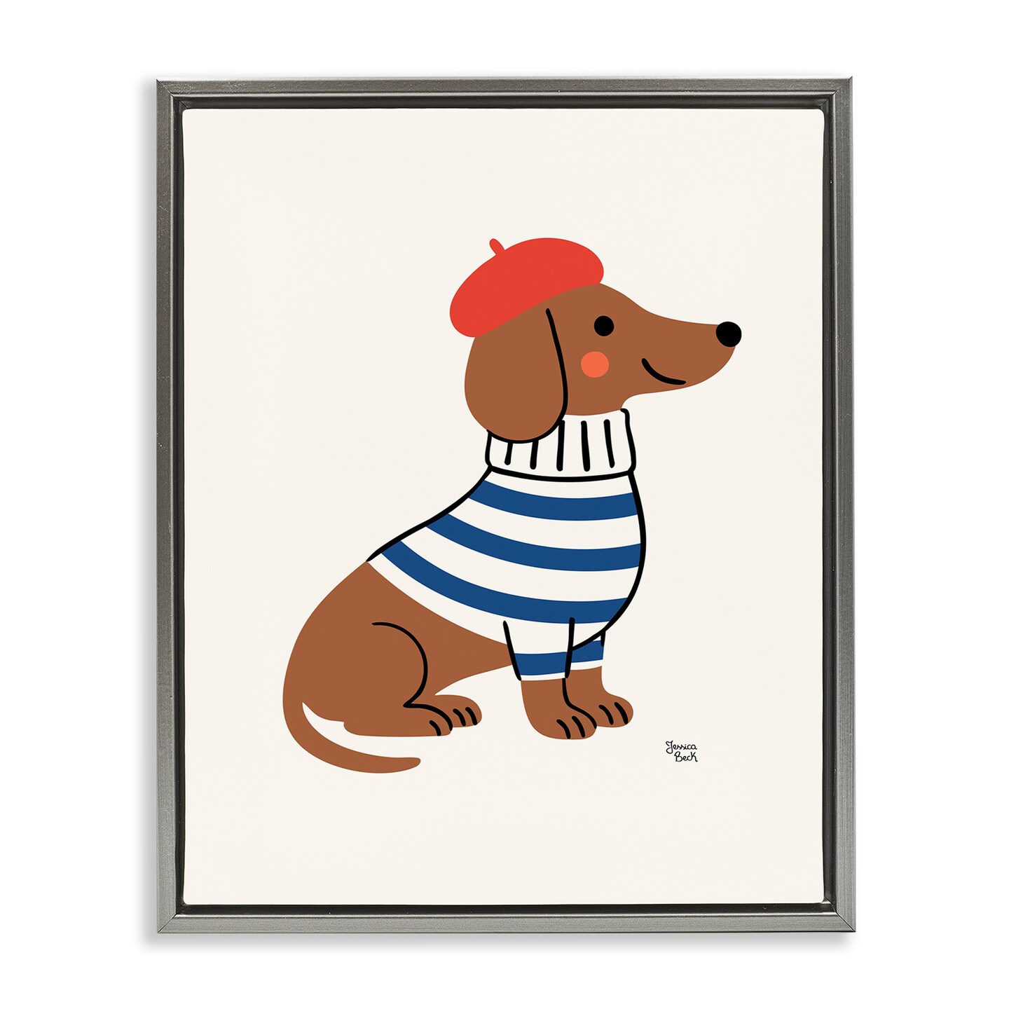 Stupell Industries French Dachshund in Beret Floating Frame, design by Jessica Beck