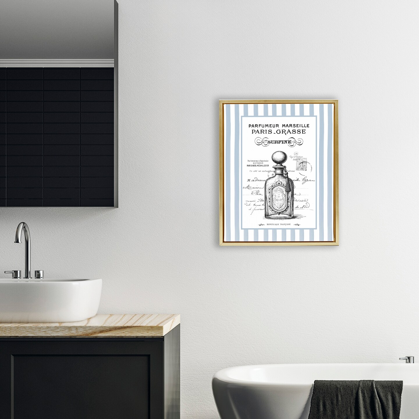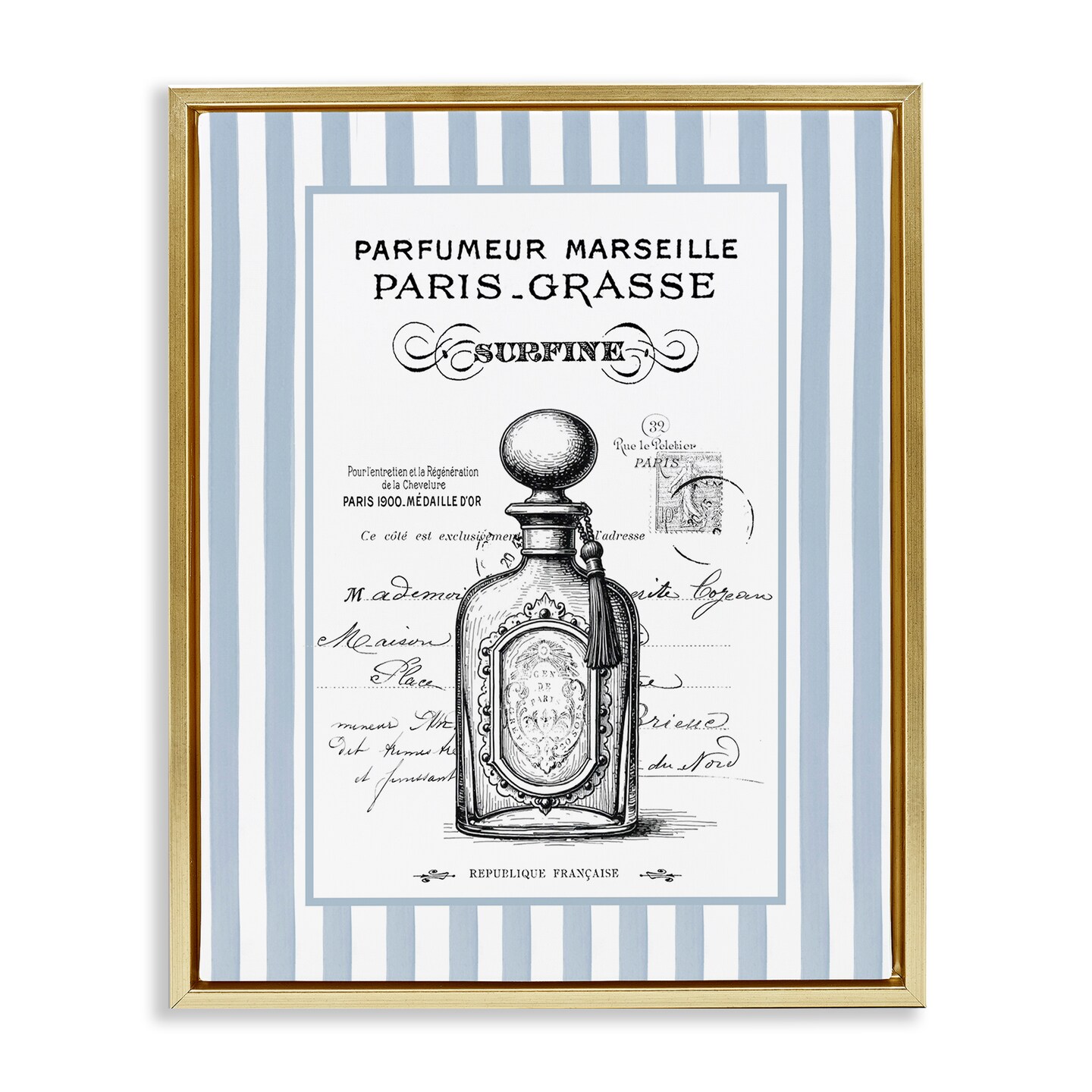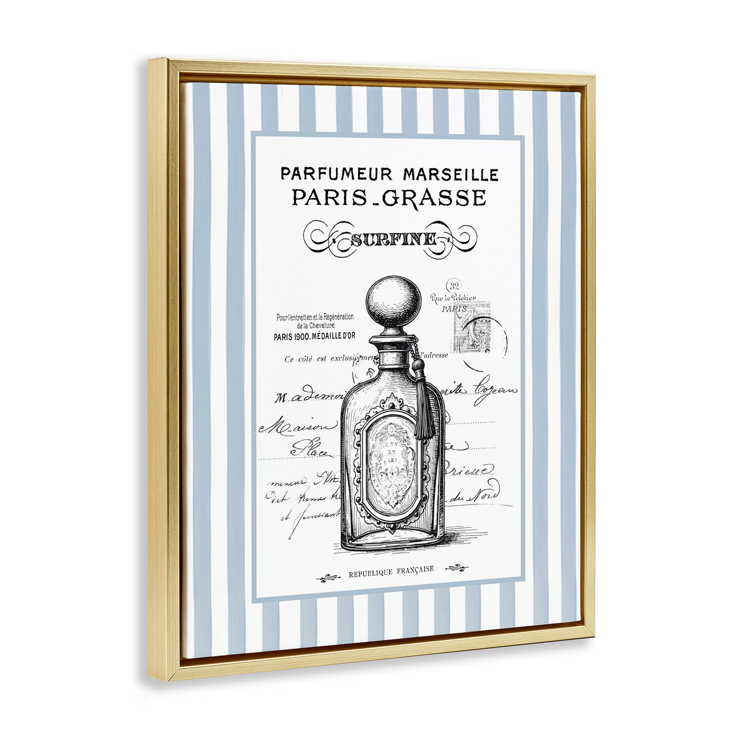 Stupell Industries French Perfume on Stripes Floating Frame, design by Lettered and Lined