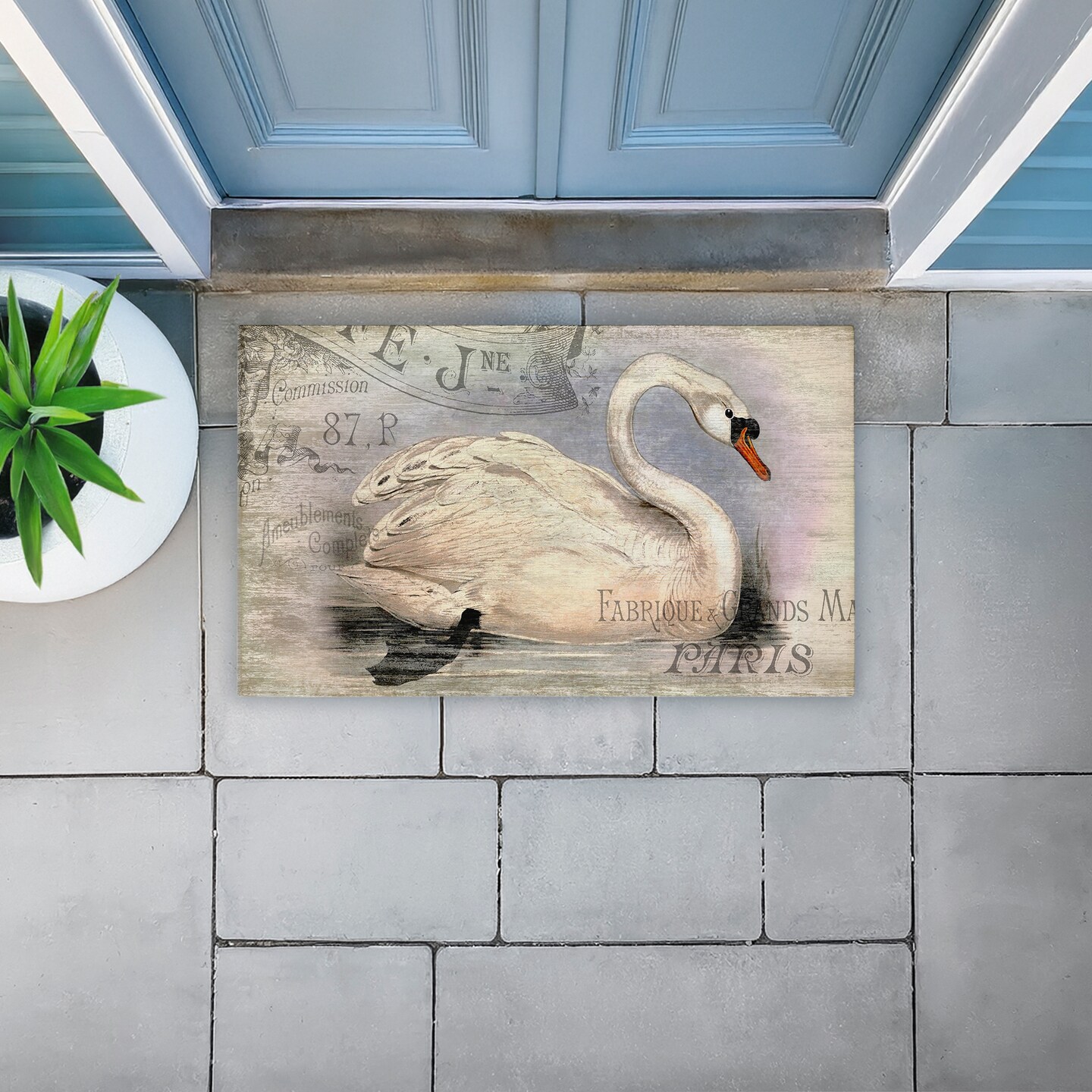 Stupell Industries French Swan Vintage Motif Printed Outdoor Door Mat, design by Suzanne Nicoll, 18"x30"
