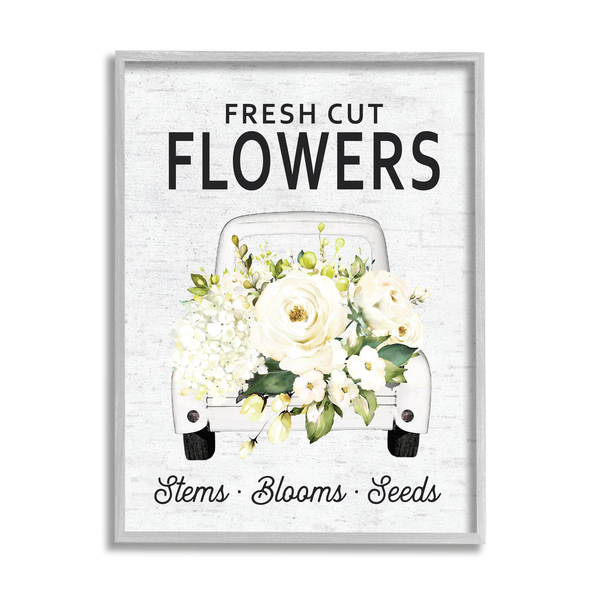 Stupell Industries Fresh Cut Flowers Sign Quaint Country Truck in Gray Frame Wall Art