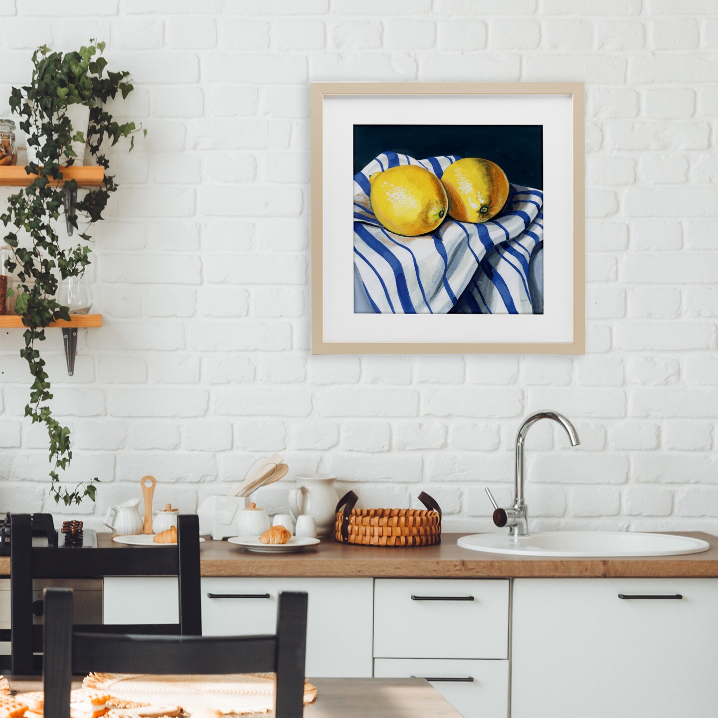 Stupell Industries Fresh Kitchen Lemons on Dishtowel Framed Print Under Glass, design by Kate Jarvik Birch