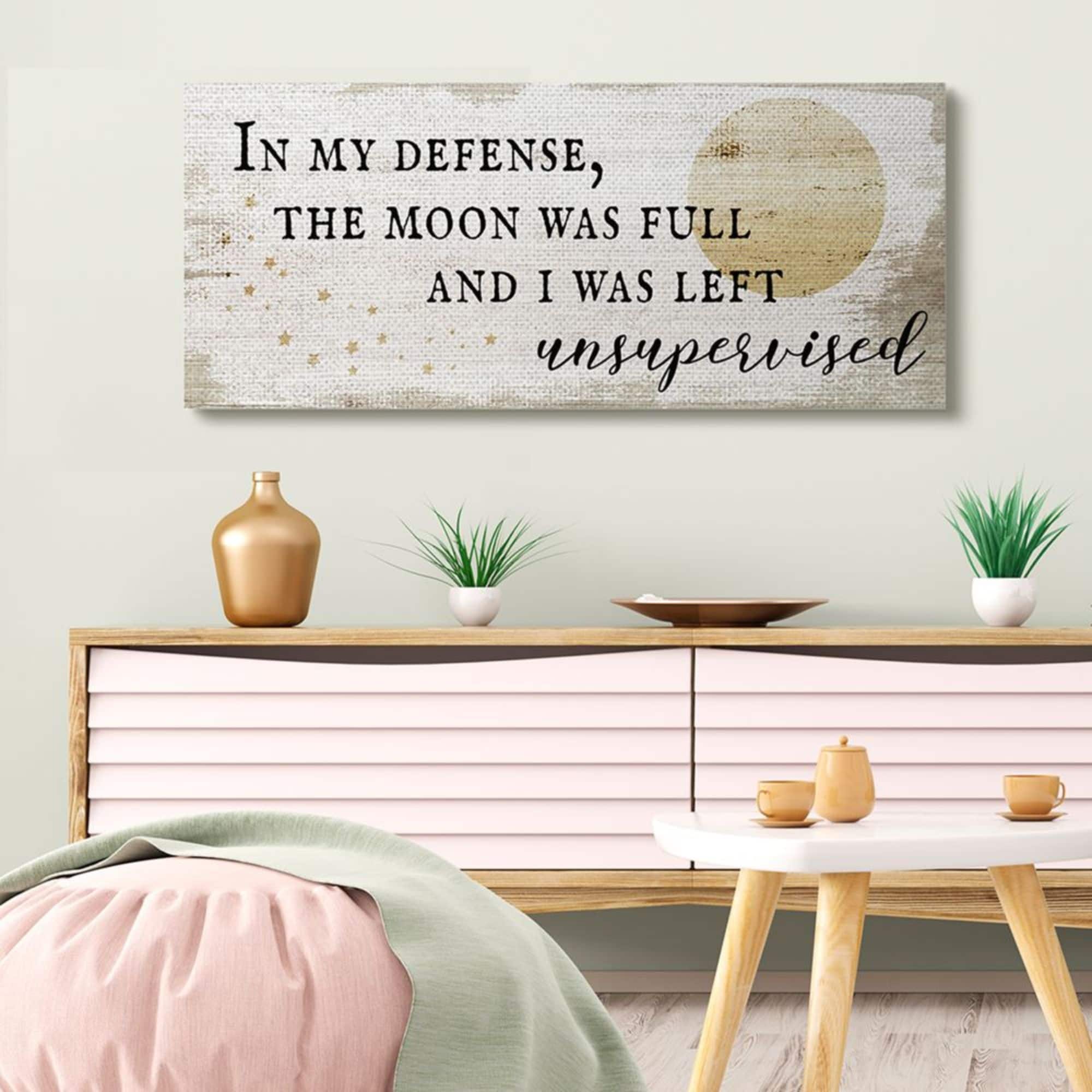 Stupell Industries Full Moon Unsupervised Phrase Rustic Halloween Charm Canvas Wall Art