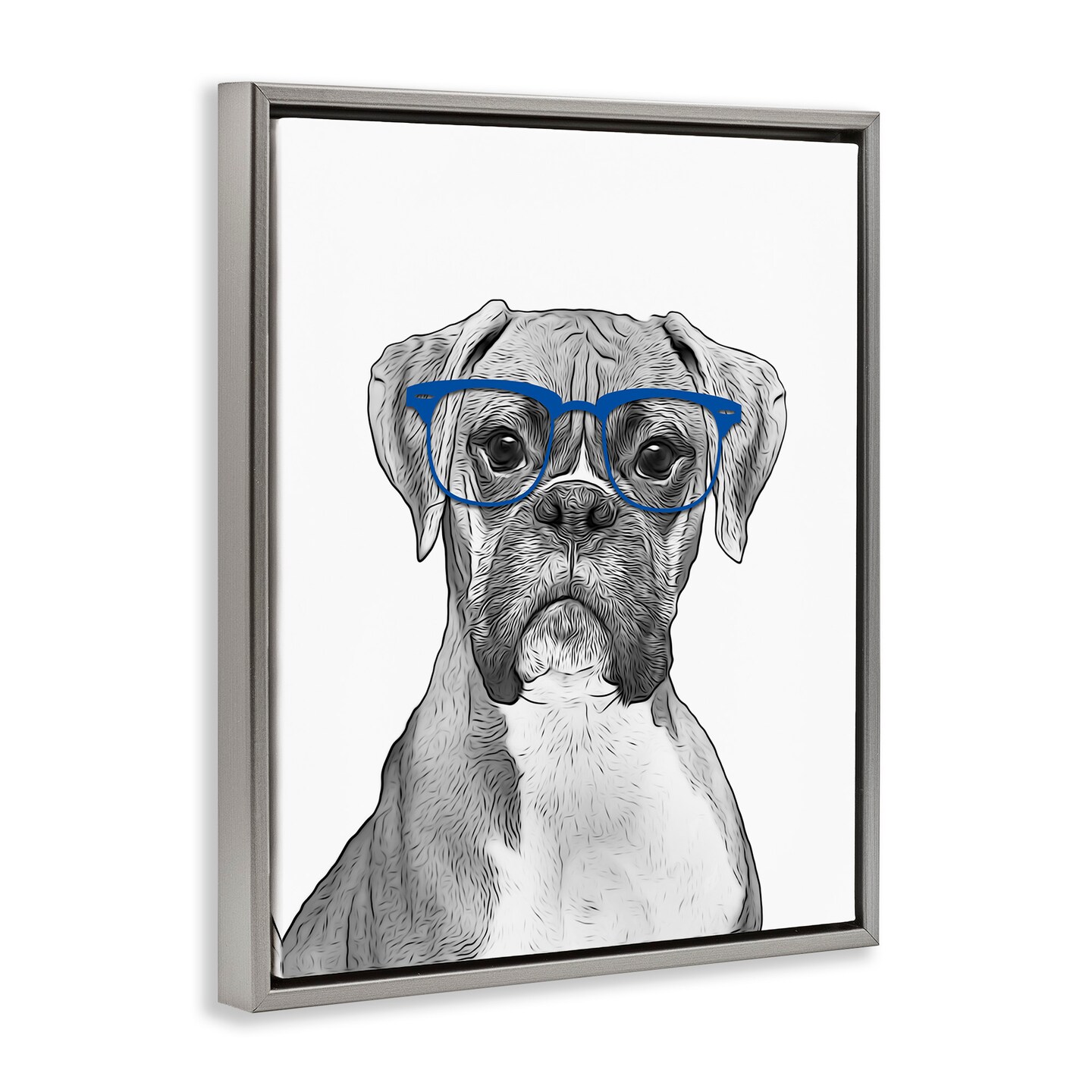 Stupell Industries Fun Boxer Dog Wearing Glasses Black Framed Floater Canvas Wall Art