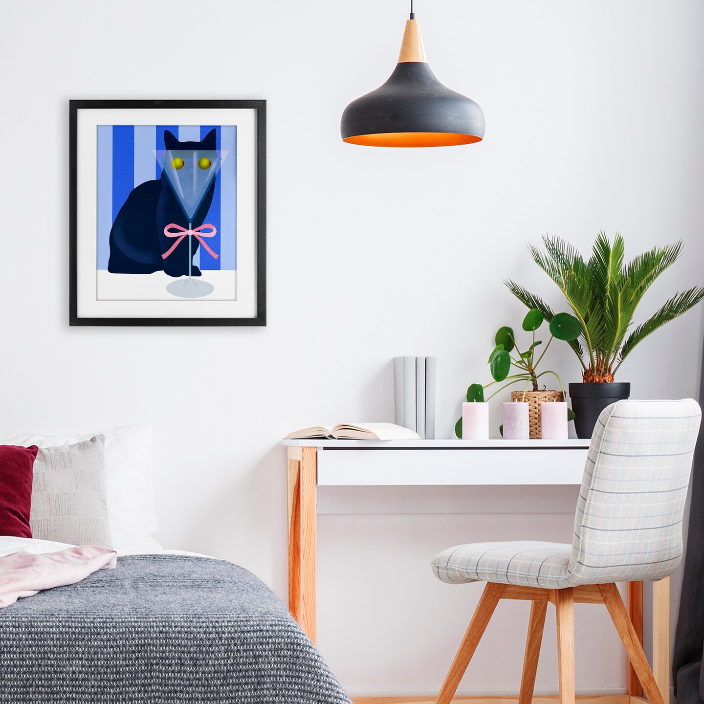 Stupell Industries Funny Cat Martini on Stripes Framed Print Under Glass, design by Lil' Rue