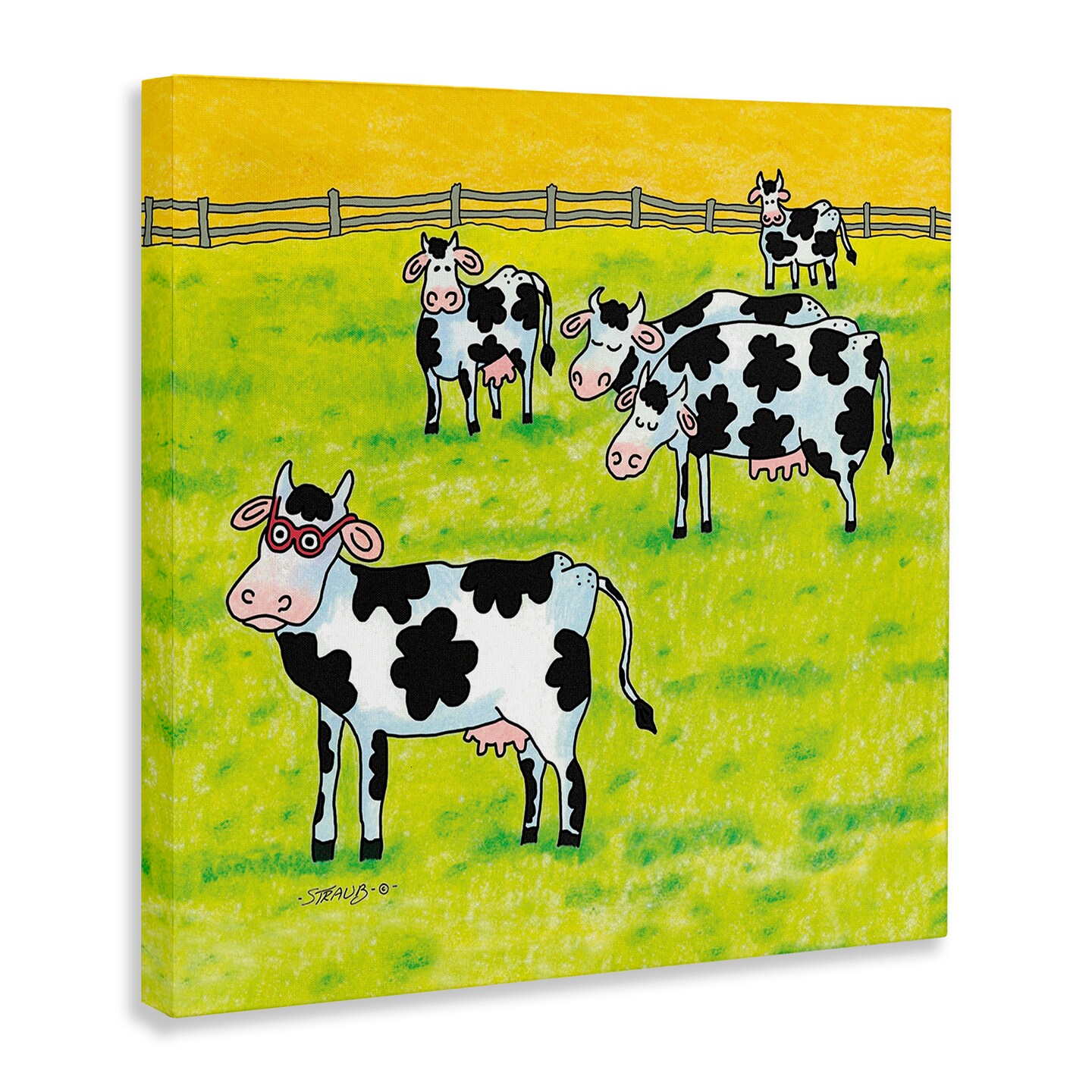 Stupell Industries Funny Cow Herd with Specs Canvas Design by Roger Straub