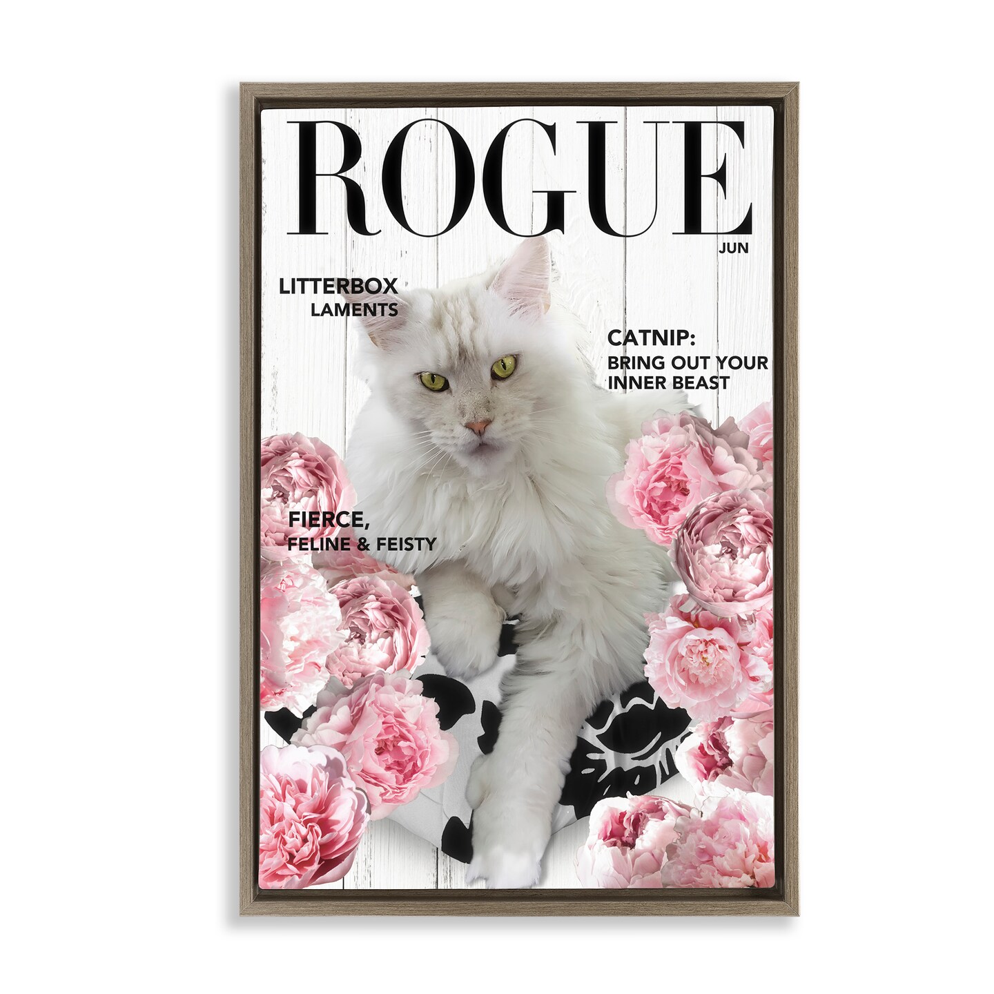 Stupell Industries Funny Floral Cat Magazine Floating Frame, design by Sasha