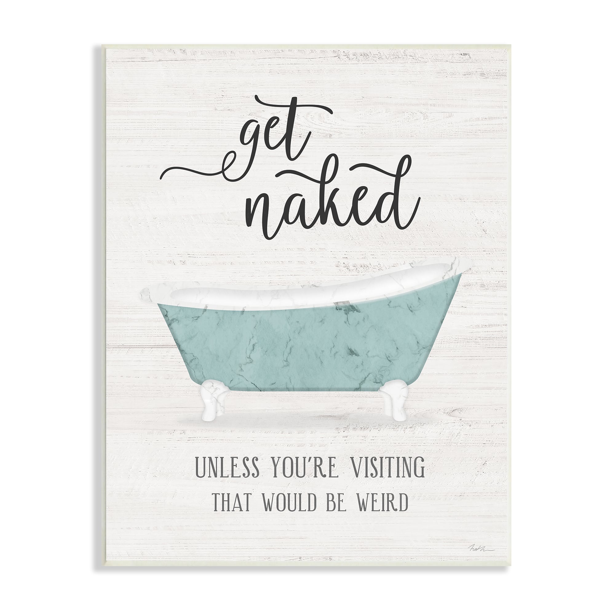 Stupell Industries Funny Get Naked Phrase Vintage Blue Tub Bathroom Wall Plaque