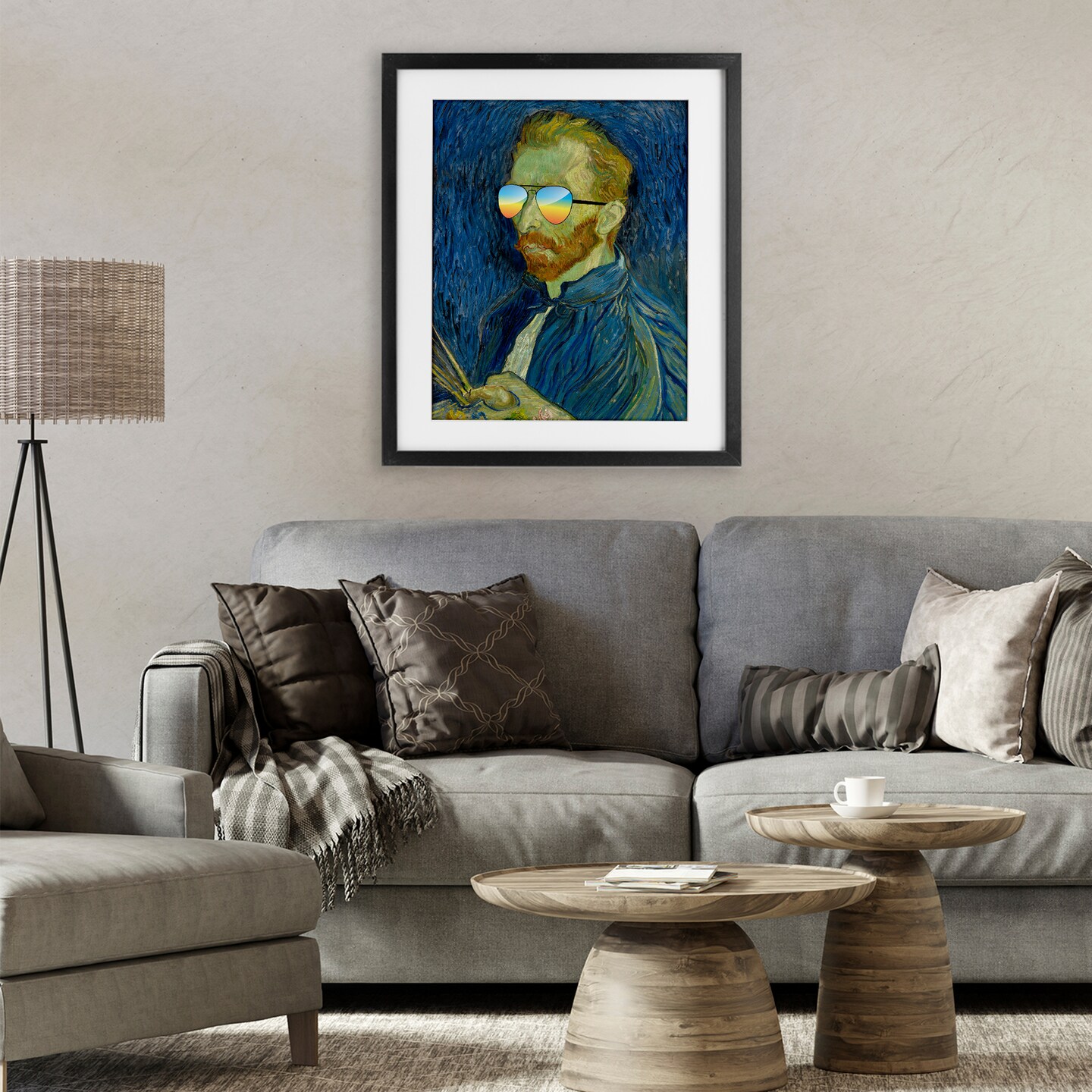 Stupell Industries Funny Van Gogh Sunglasses Framed Print Under Glass, design by Masters Redux