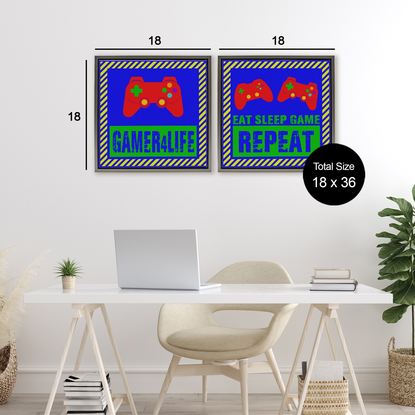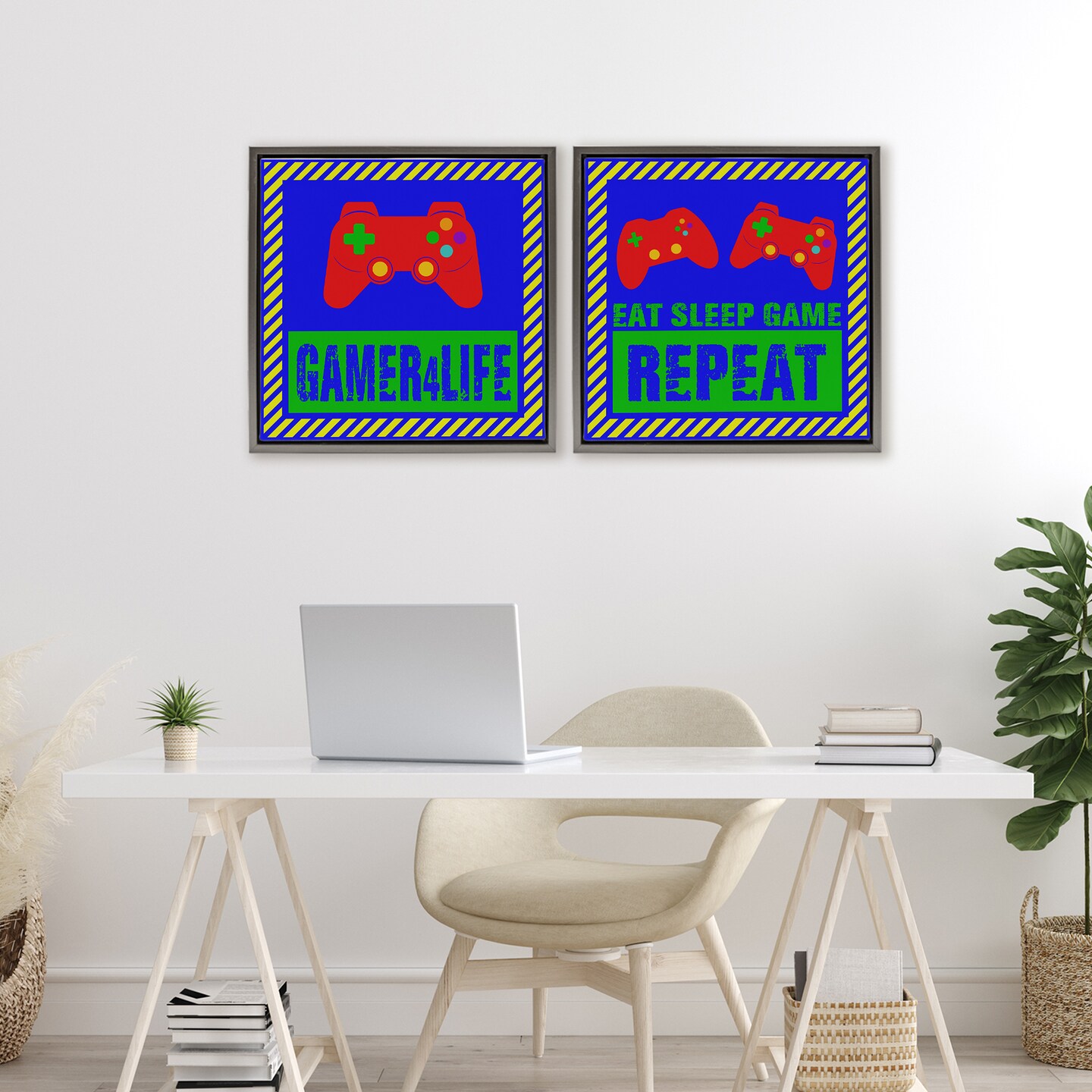 Stupell Industries Gamer Quotes with Stripes 2pc Floating Frame Set, design by Marcus Prime