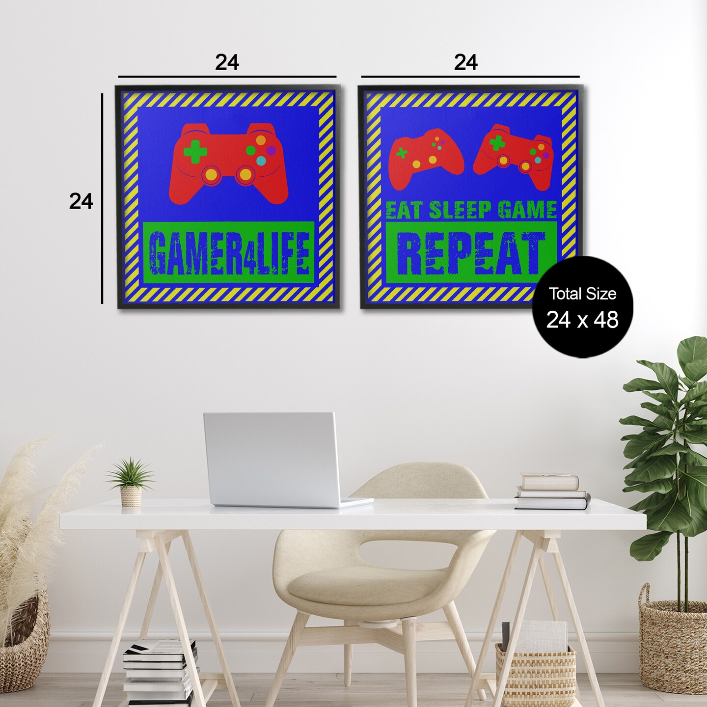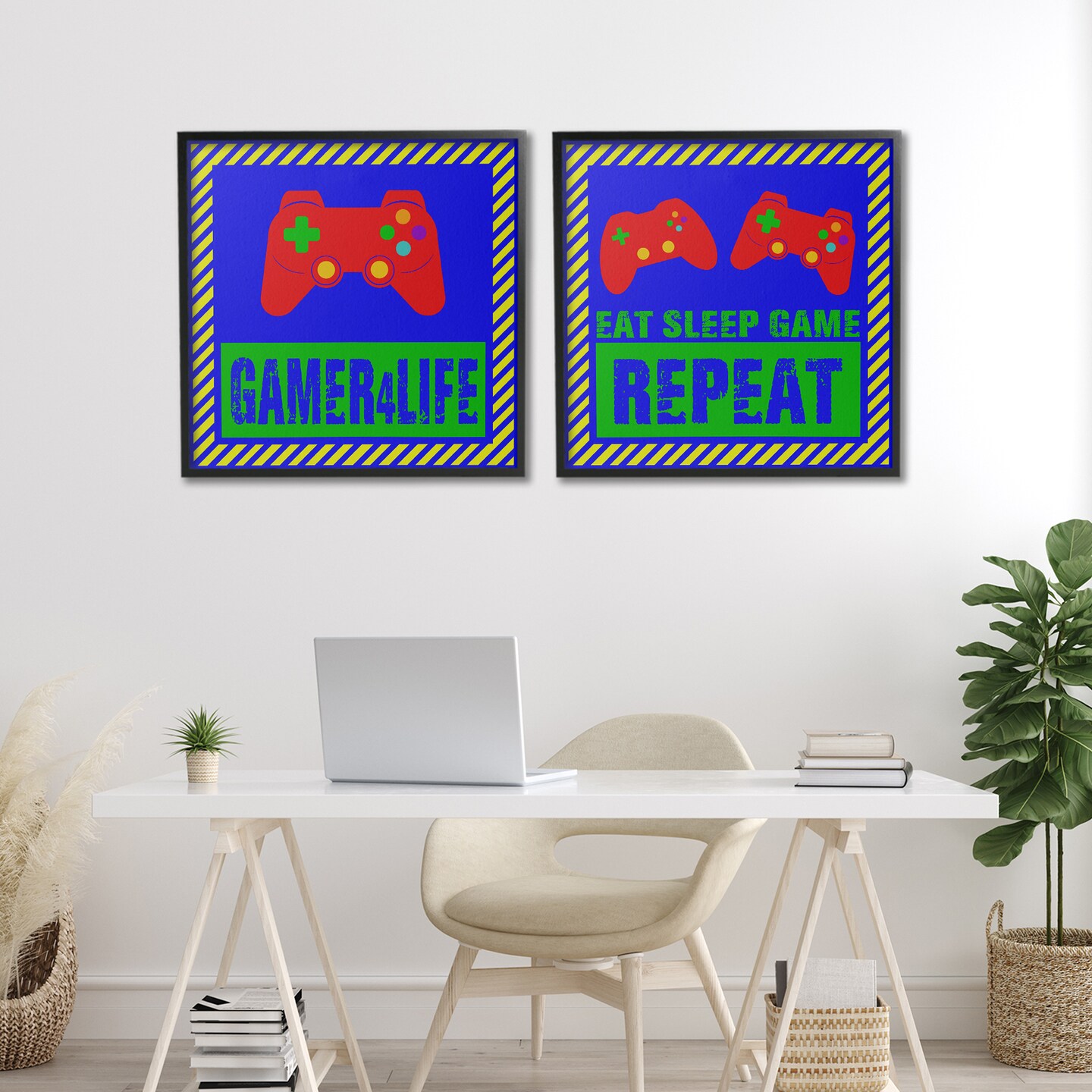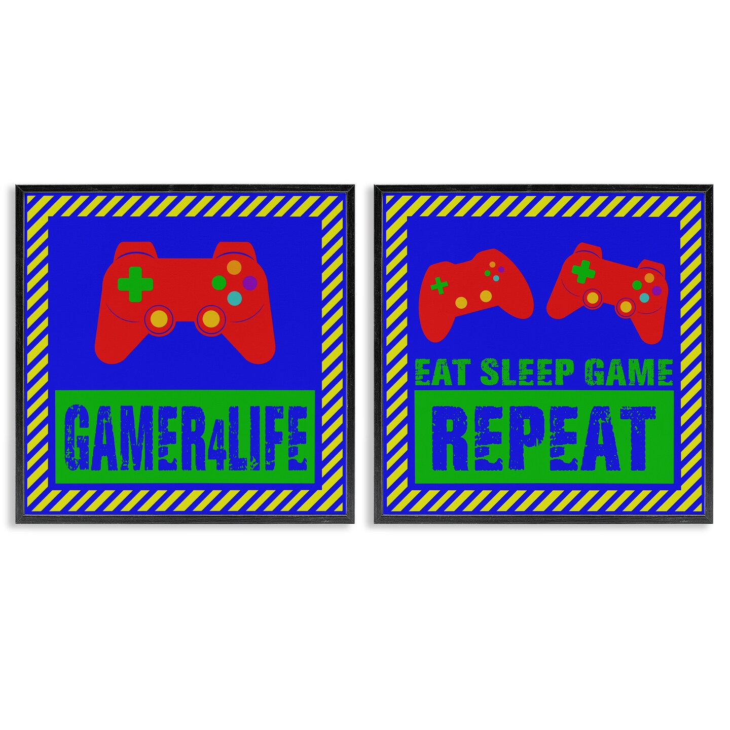 Stupell Industries Gamer Quotes with Stripes 2pc Framed Giclee Set, design by Marcus Prime