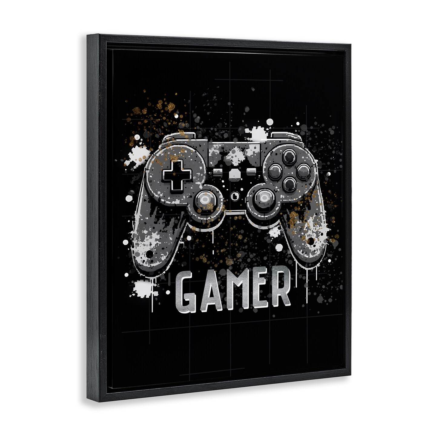 Stupell Industries Gamer with Modern Splash Framed Floater Canvas Wall Art Design by Kim Allen