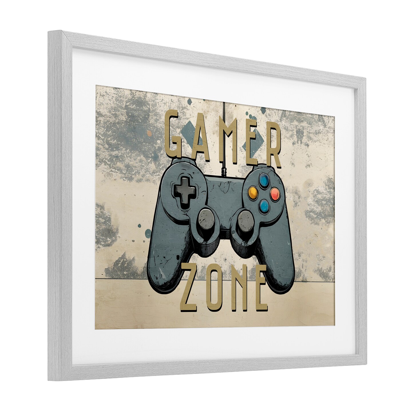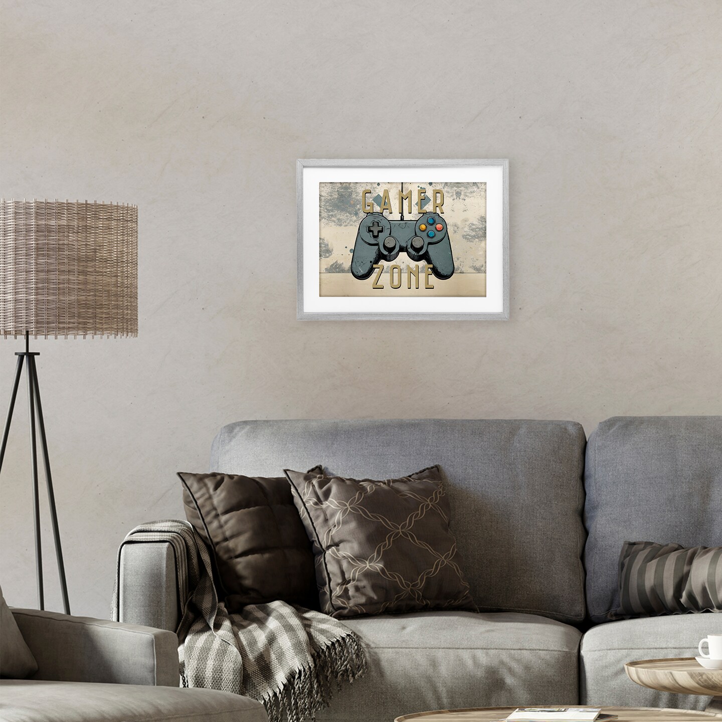 Stupell Industries Gamer Zone with Abstract Background Framed Print Under Glass, design by Kim Allen