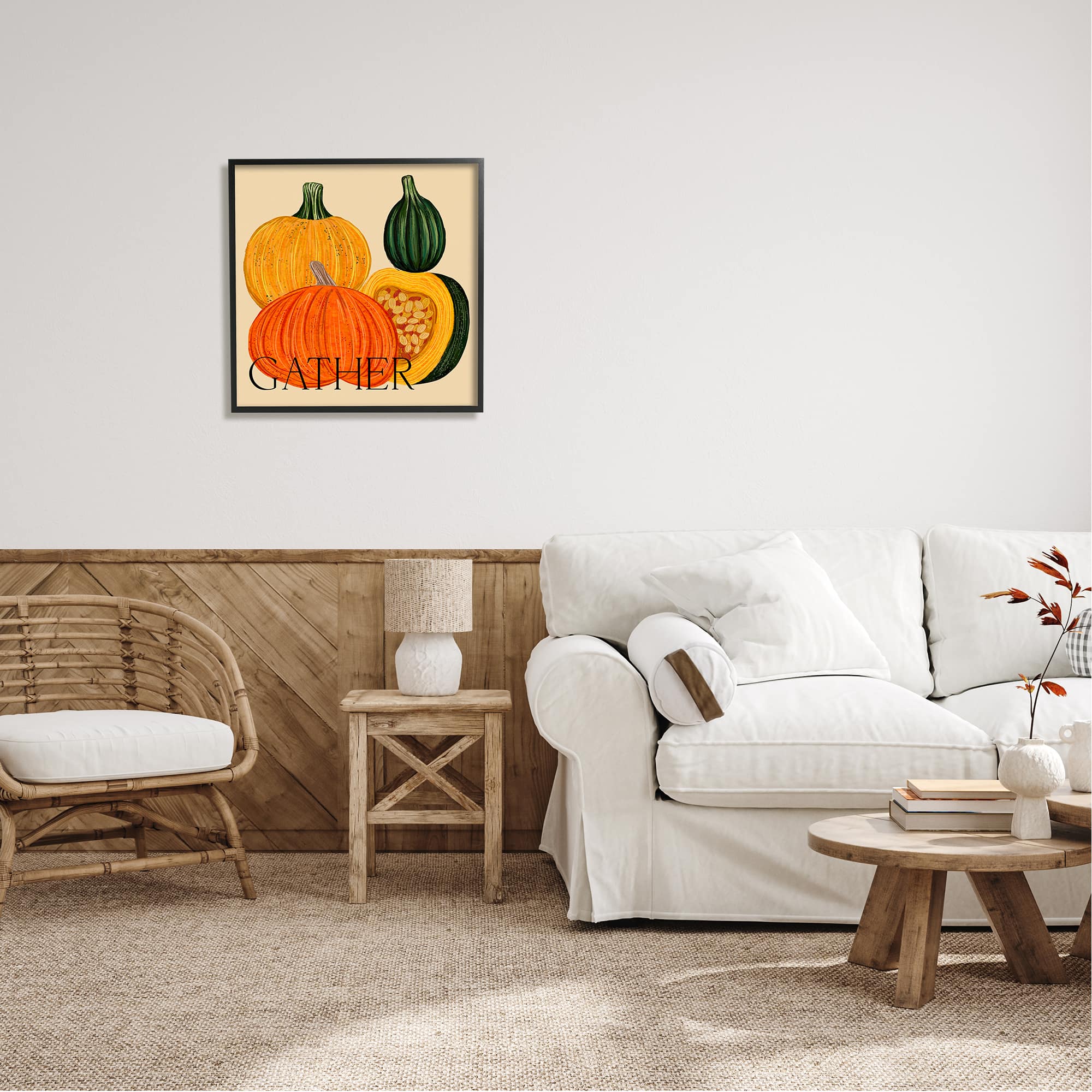 Stupell Industries Gather Autumn Harvest Gourds Framed Giclee Art