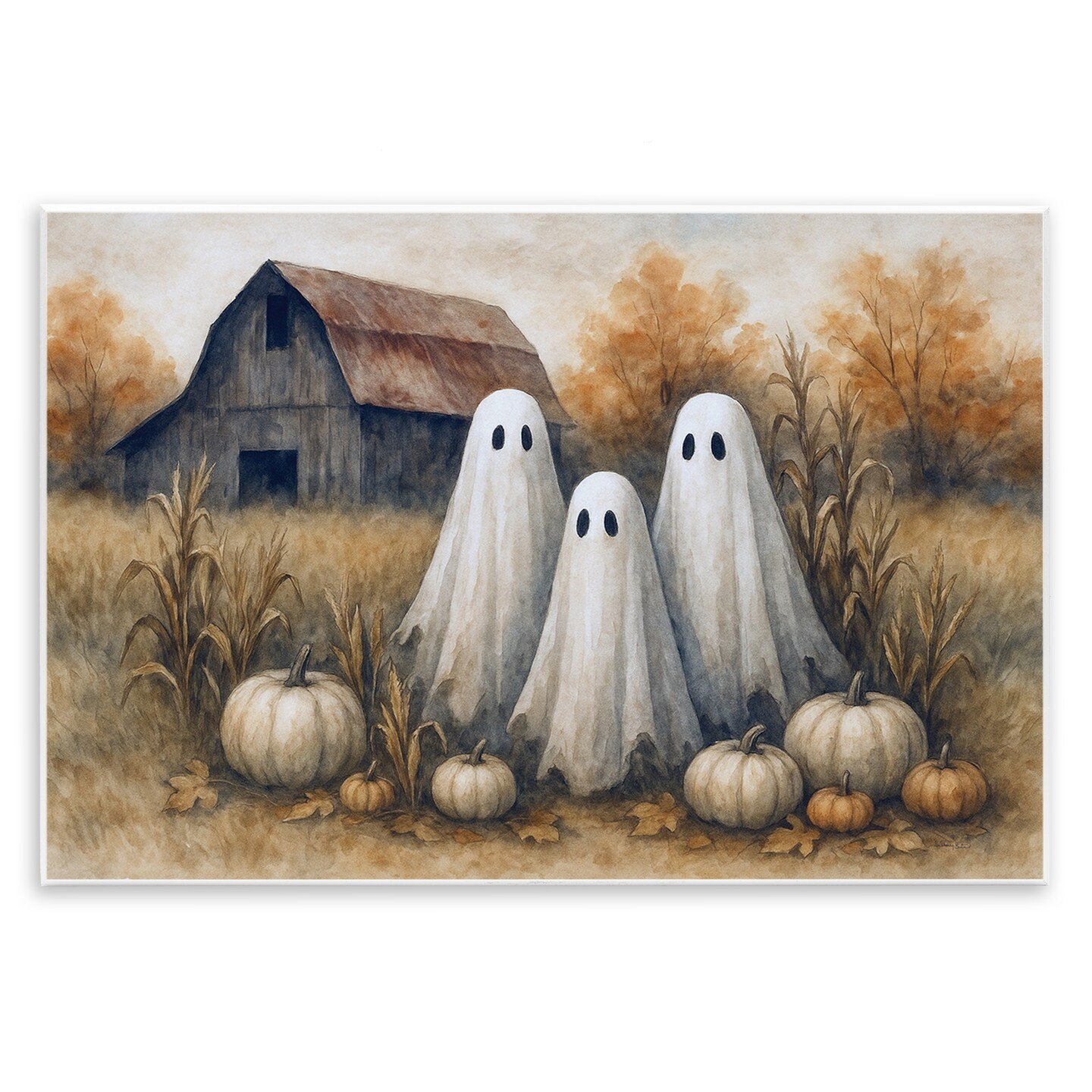 Stupell Industries Ghost Trio on Pumpkin Farm Wall Plaque, design by Antony Smith