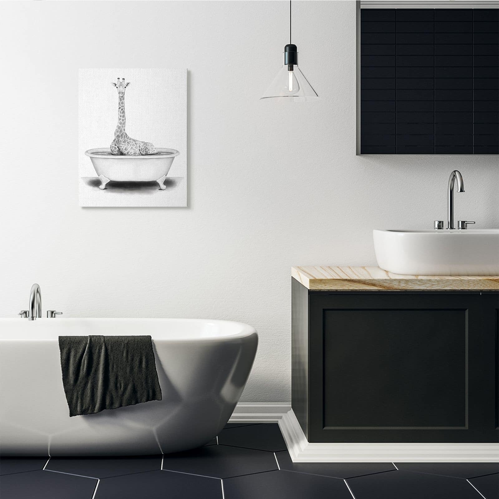 Stupell Industries Giraffe In A Tub Funny Animal Bathroom Drawing Canvas Wall Art