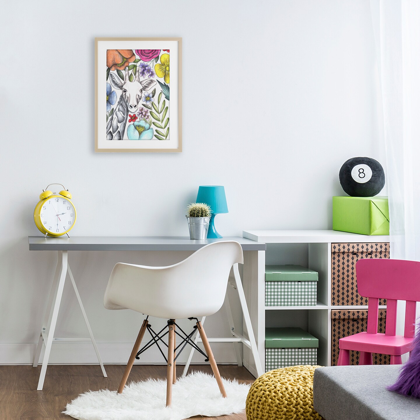 Stupell Industries Giraffe In The Midst of Flowers Framed Print Under Glass, design by Cecilia Battaini