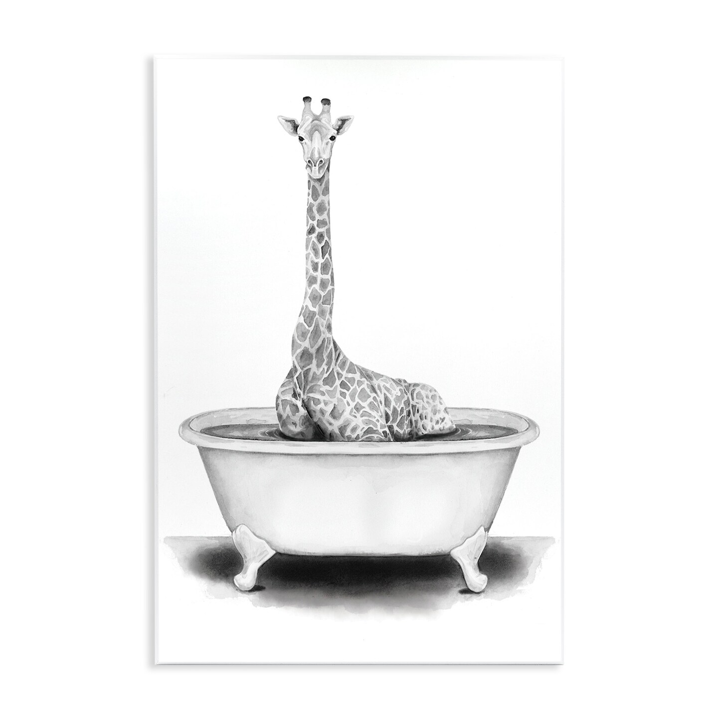 Stupell Industries Giraffe In Tub Funny Animal Bathroom Wall Plaque Art