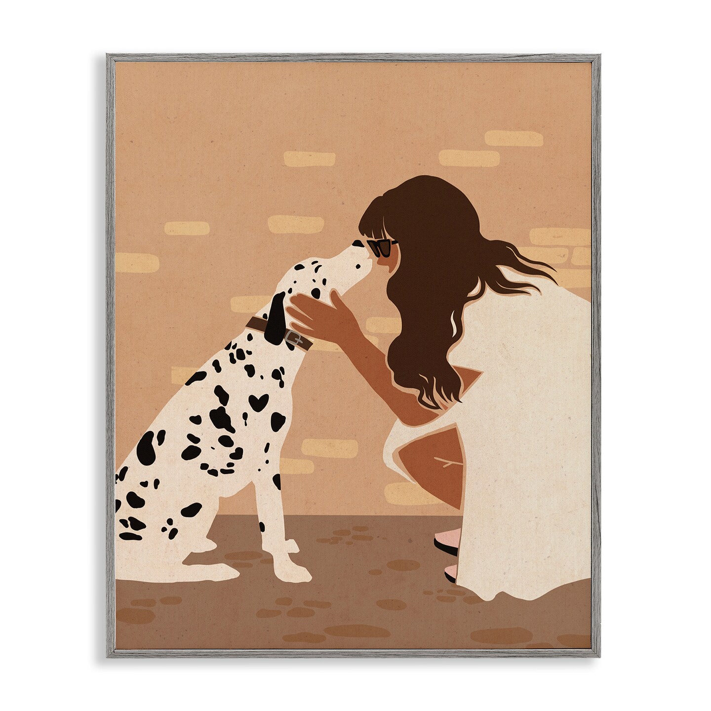 Stupell Industries Girl Hugging Dalmatian Framed Giclee Wall Art Design by Svetlana Aleynikova