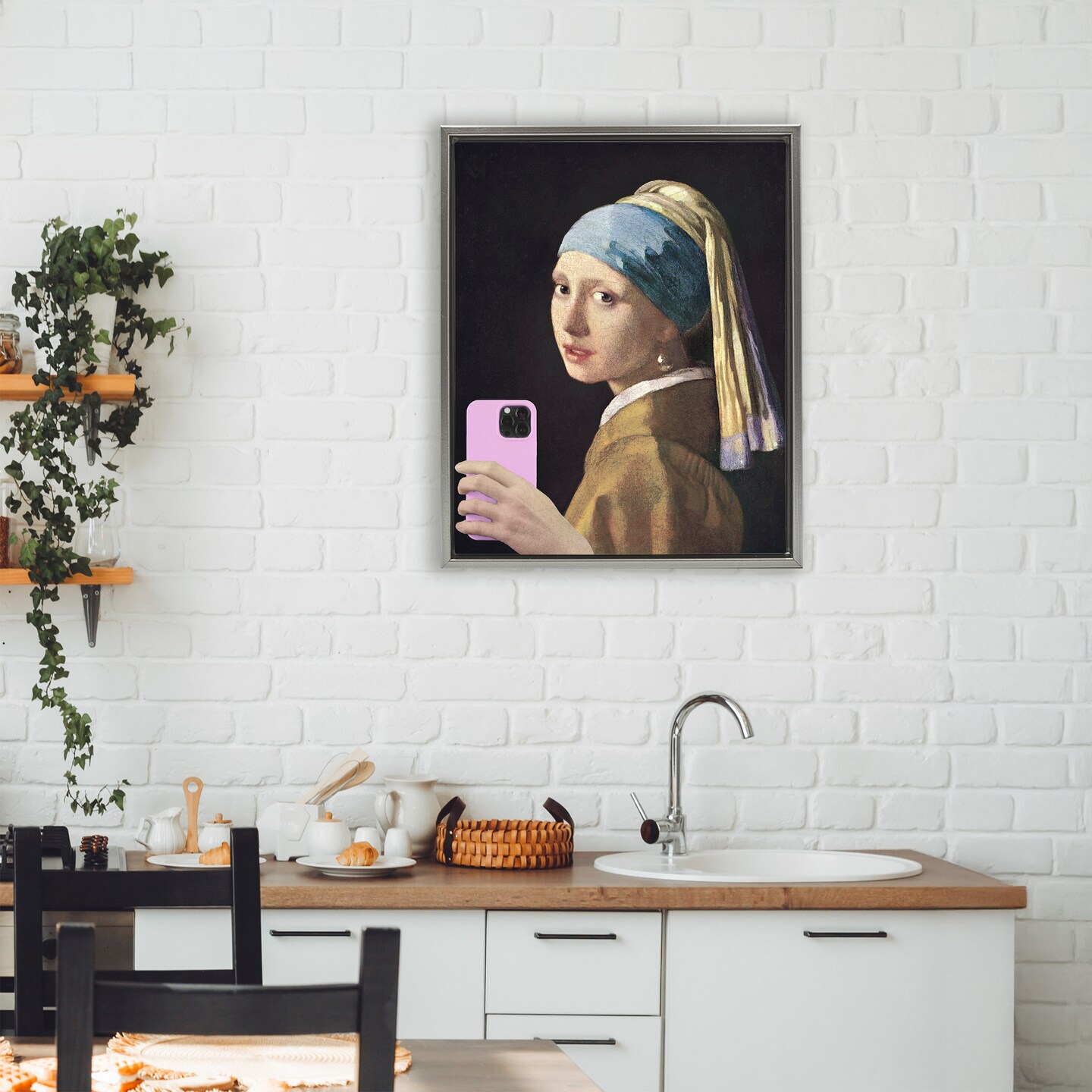 Stupell Industries Girl With Pink Phone Funny Floating Frame, design by Masters Redux
