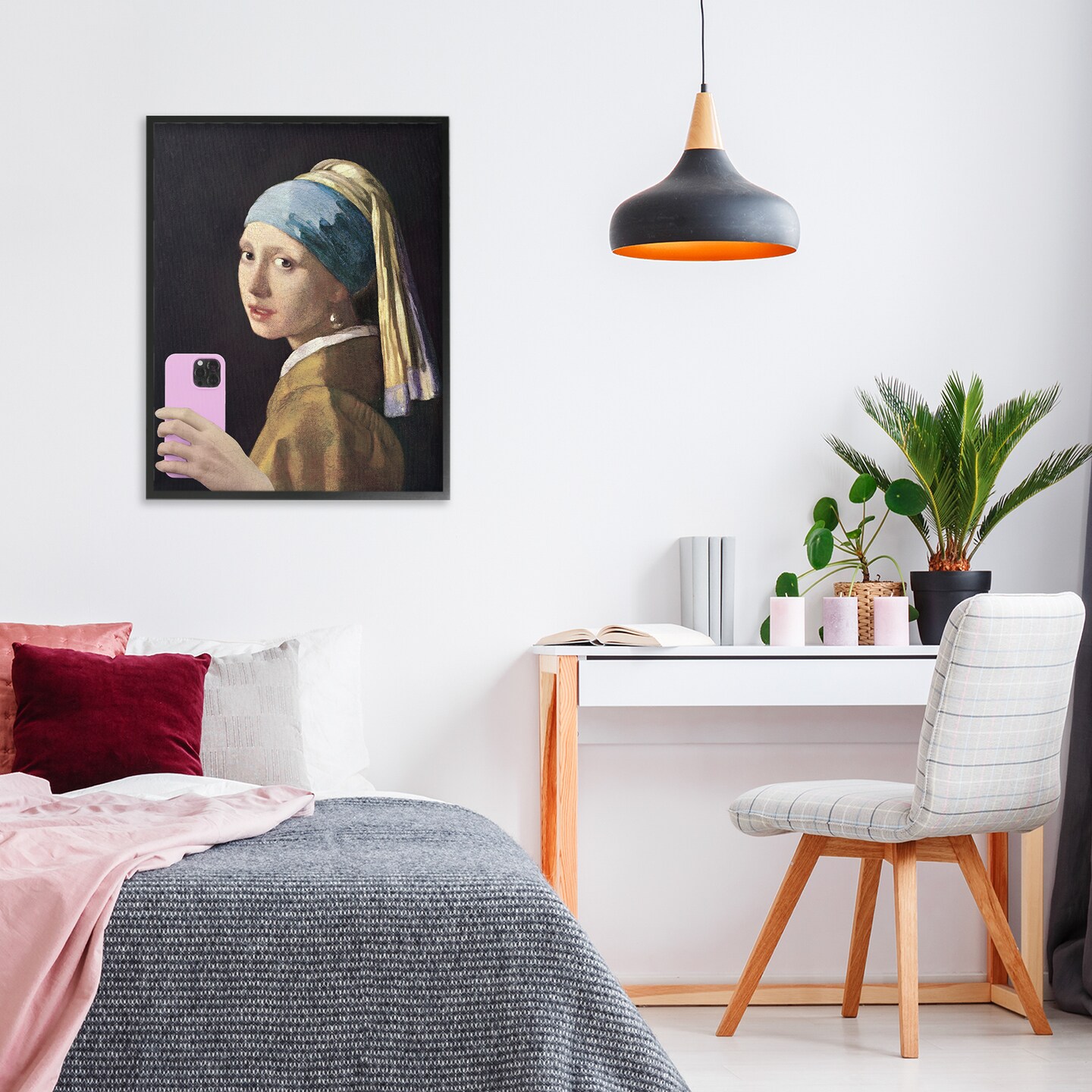 Stupell Industries Girl With Pink Phone Funny Framed Giclee, design by Masters Redux