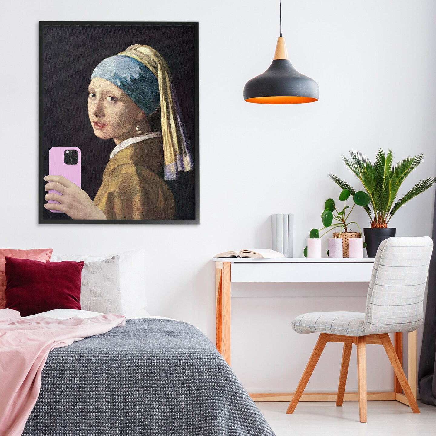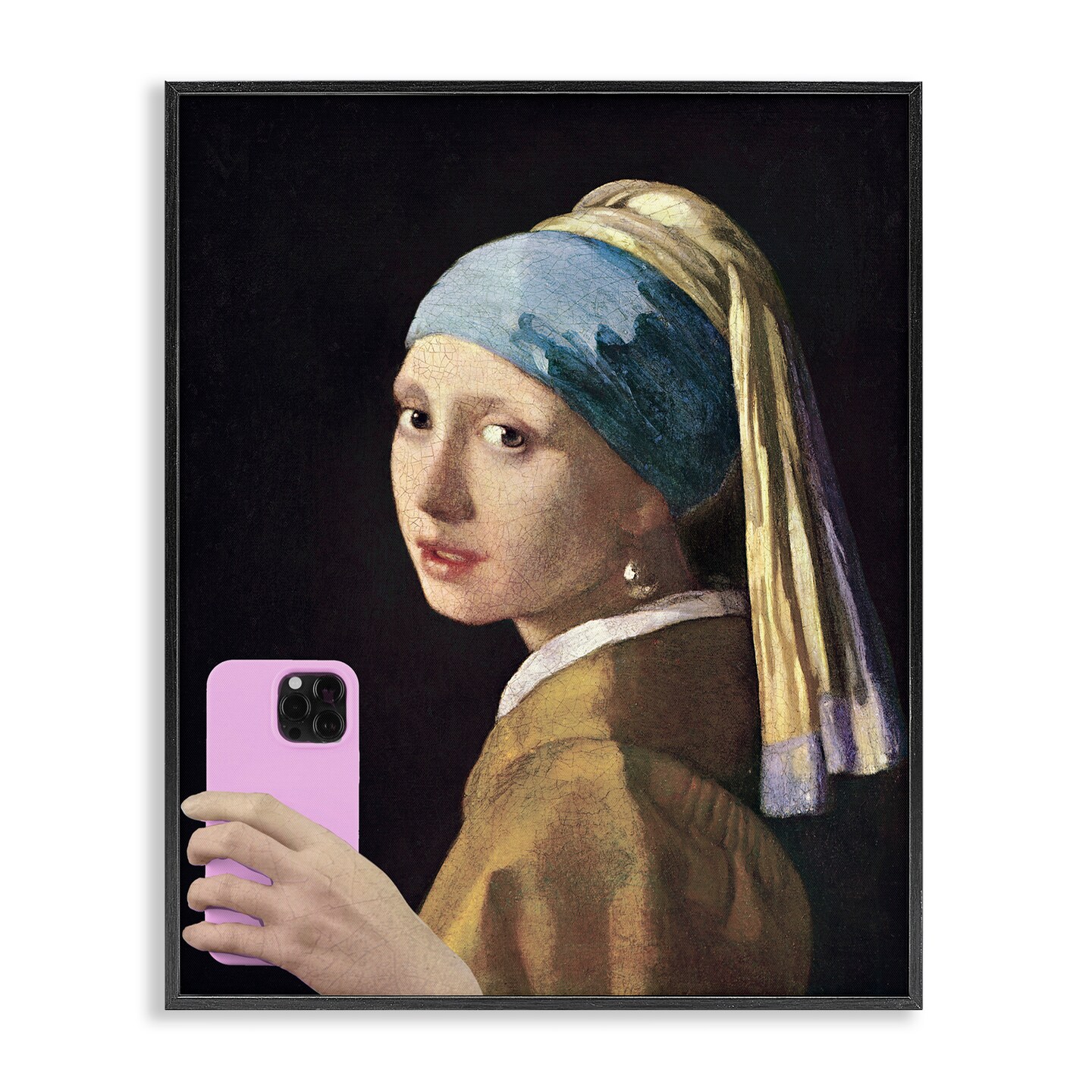 Stupell Industries Girl With Pink Phone Funny Framed Giclee, design by Masters Redux