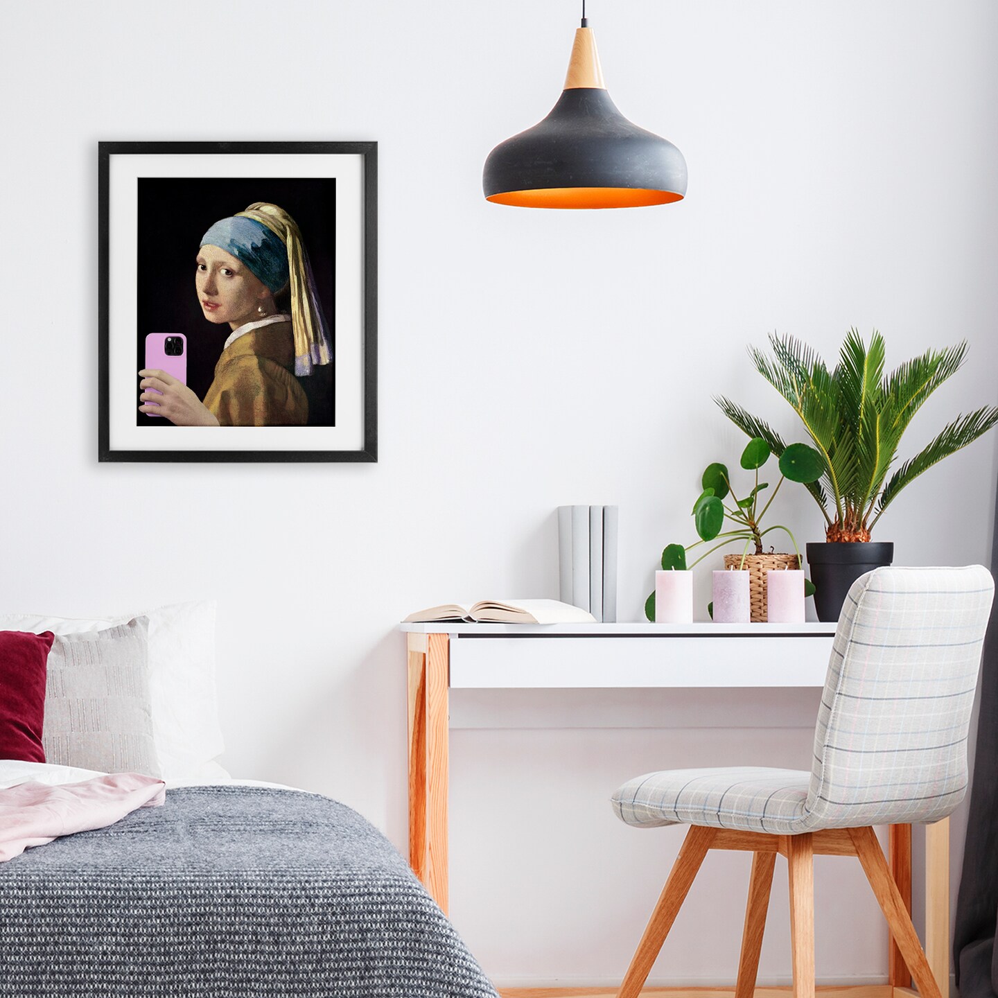 Stupell Industries Girl With Pink Phone Funny Framed Print Under Glass, design by Masters Redux