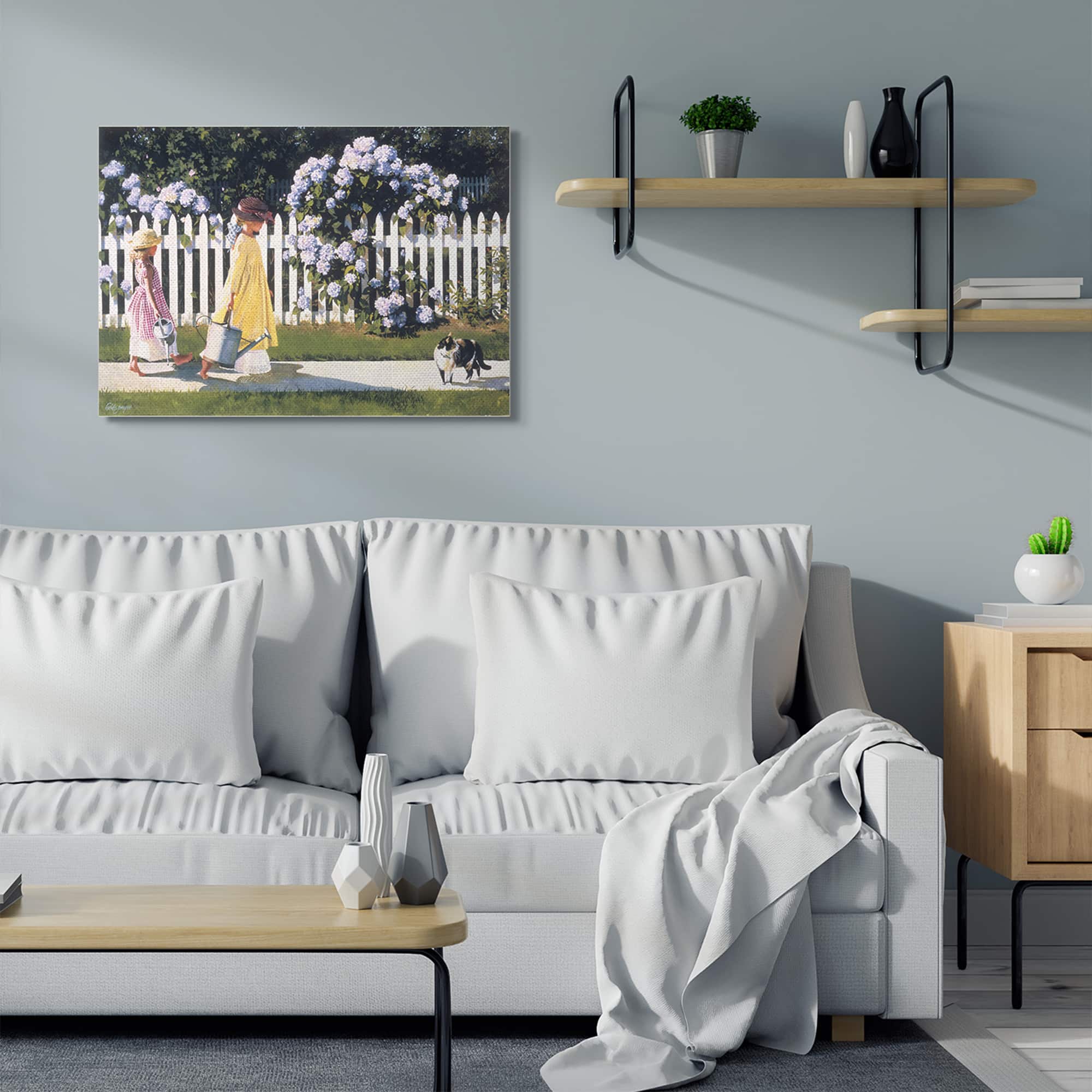 Stupell Industries Girls Gardening Neighborhood Sidewalk Picket Fence Canvas Wall Art