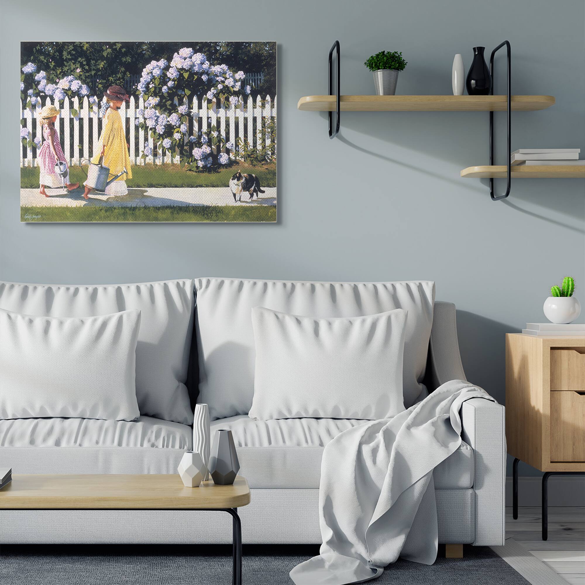 Stupell Industries Girls Gardening Neighborhood Sidewalk Picket Fence Canvas Wall Art