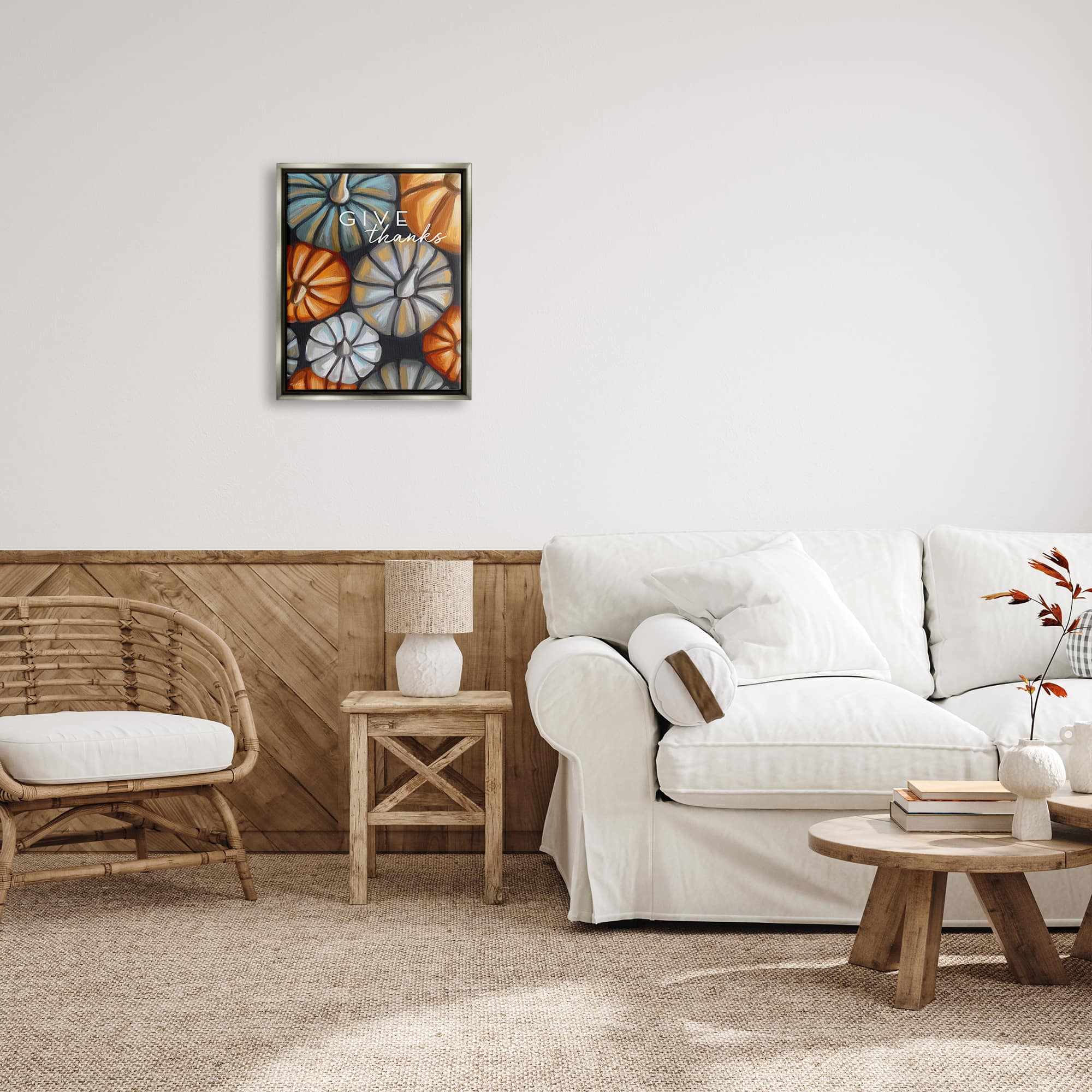 Stupell Industries Give Thanks Autumn Phrase Framed Floater Canvas Wall Art