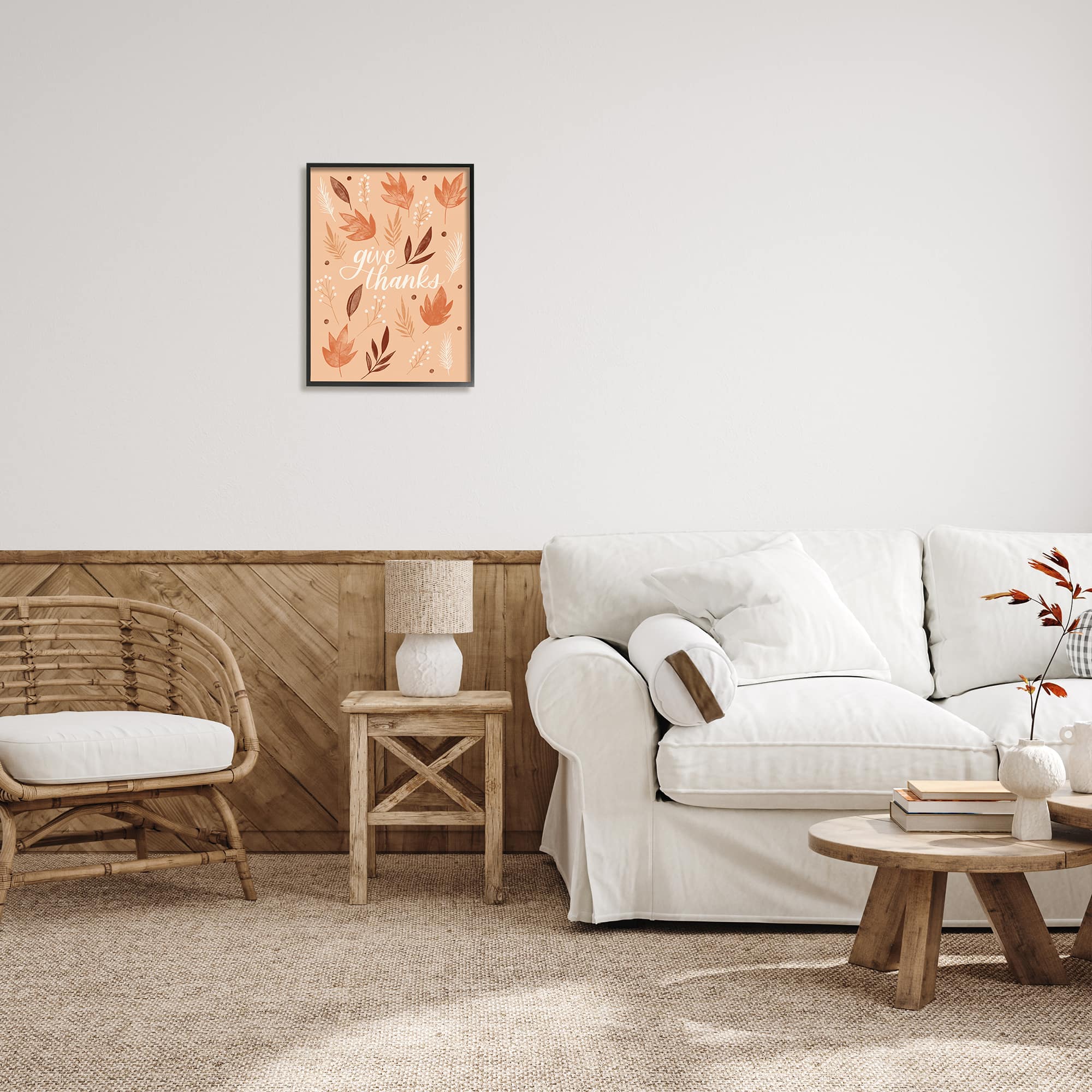 Stupell Industries Give Thanks Autumnal Leaves Framed Giclee Art