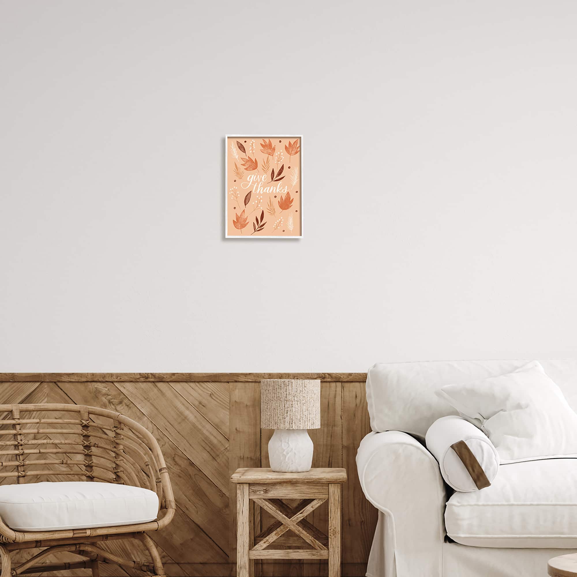 Stupell Industries Give Thanks Autumnal Leaves Framed Giclee Art