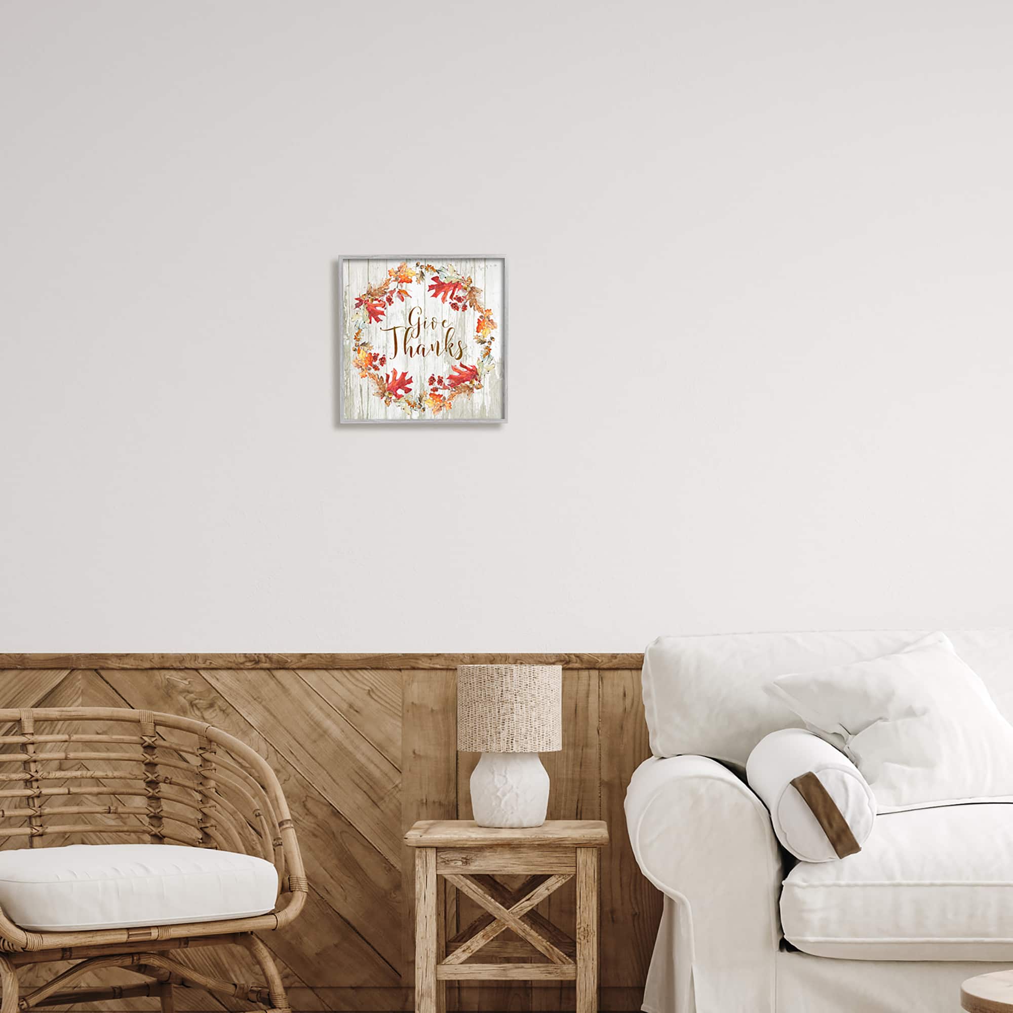 Stupell Industries Give Thanks Autumnal Wreath Framed Giclee Art
