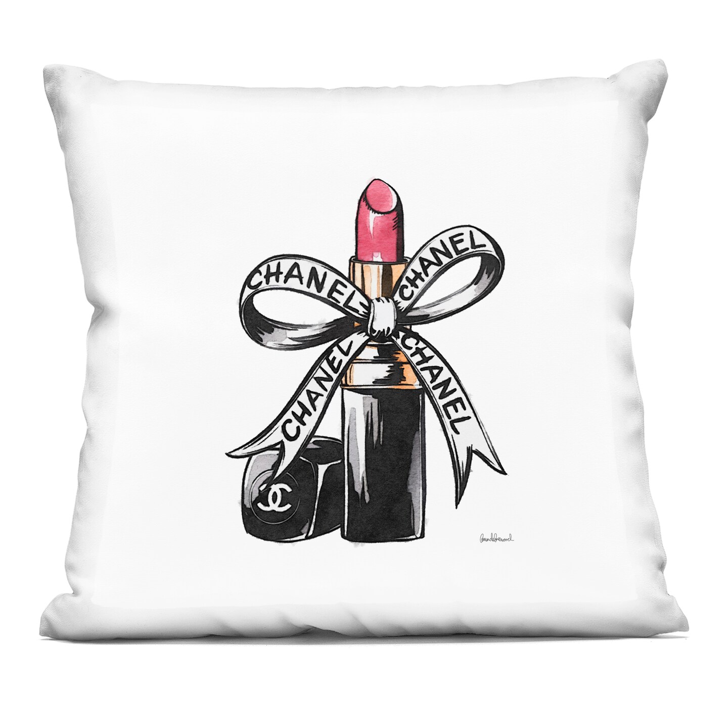 Stupell Industries Glam Brand Lipstick Ribbon Decorative Printed Throw Pillow design by Amanda Greenwood, 18 x 7 x 18