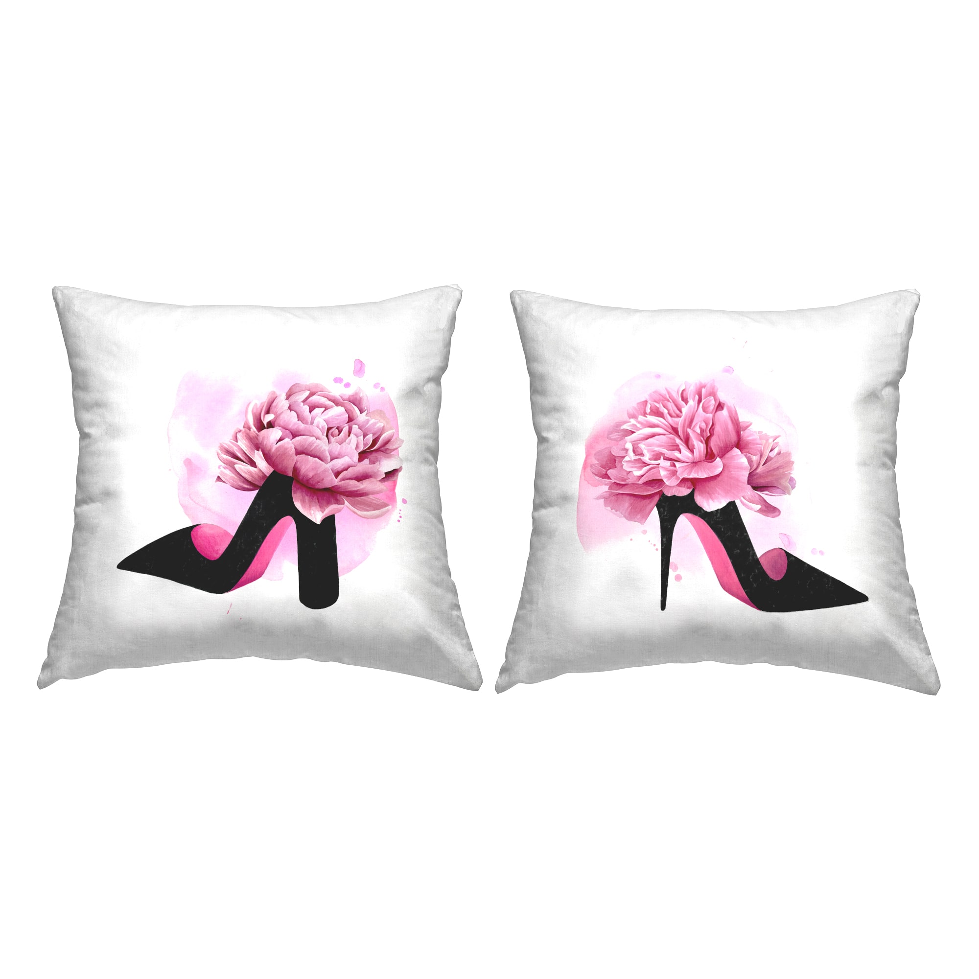 Stupell Industries Glam Fashion Heels Pink Black Flower Shoes 2 Pillows, Each 18" x 18"