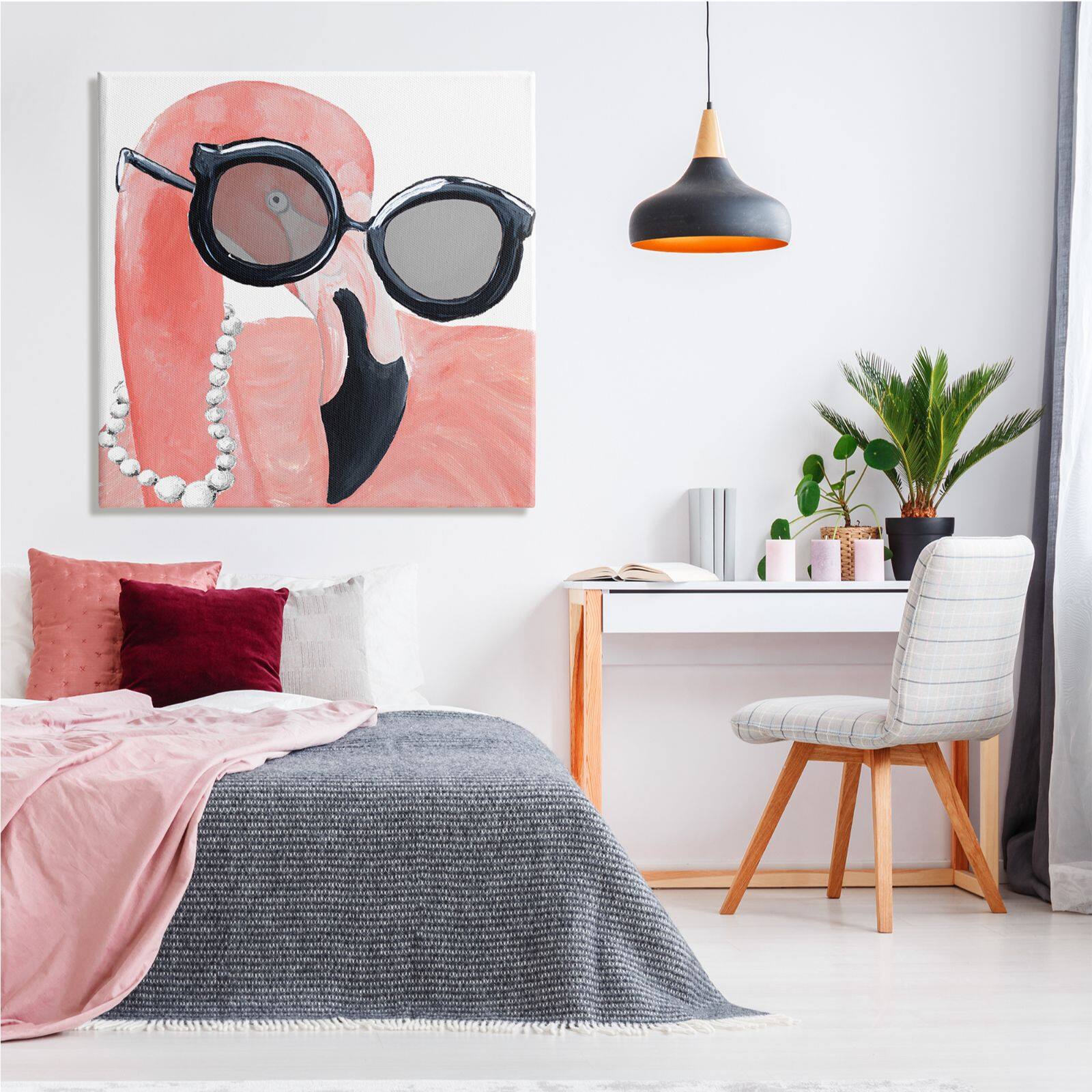 Stupell Industries Glam Fashion Pink Flamingo Sunglasses Pearls Bird Canvas Wall Art