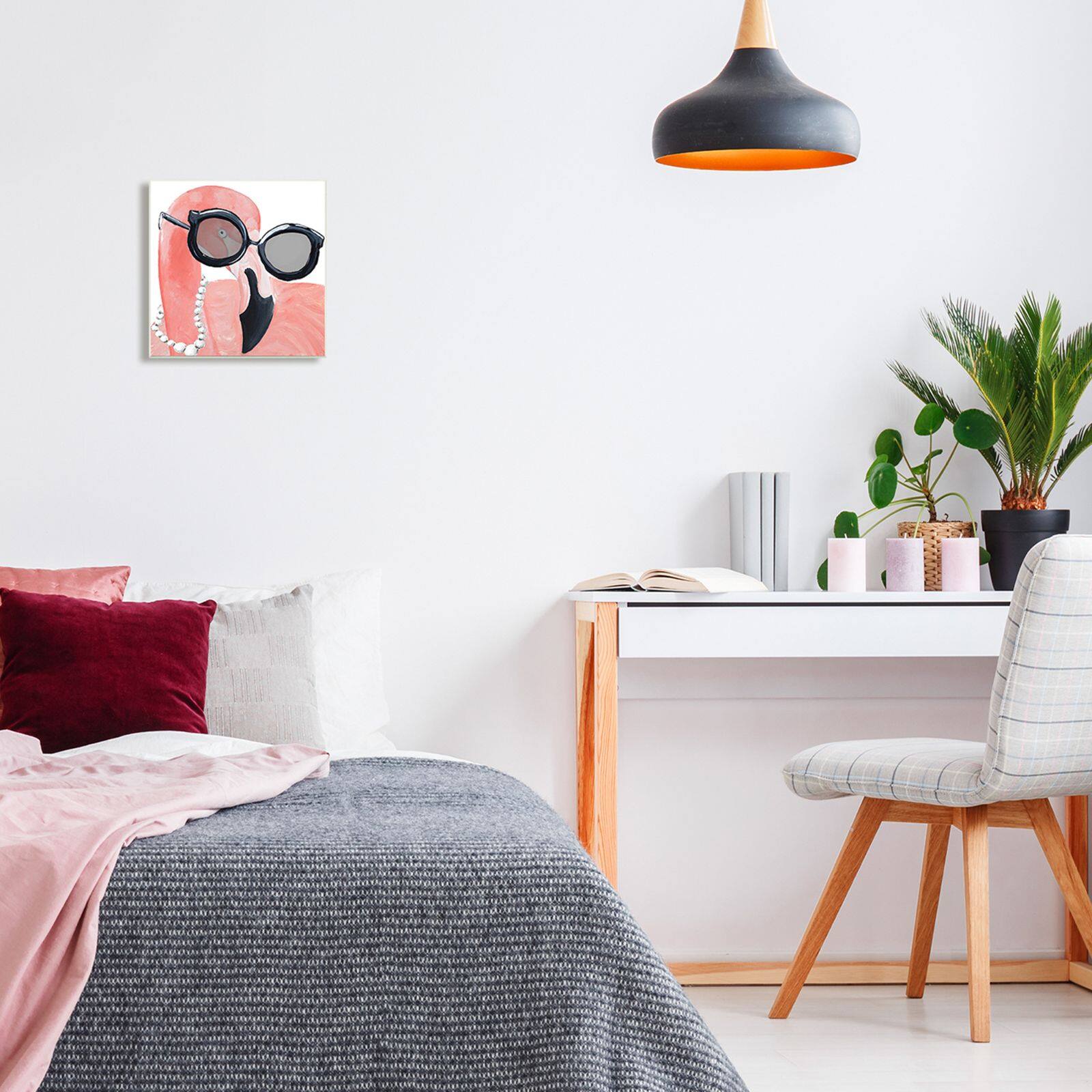 Stupell Industries Glam Fashion Pink Flamingo Sunglasses Pearls Bird,12" x 12"