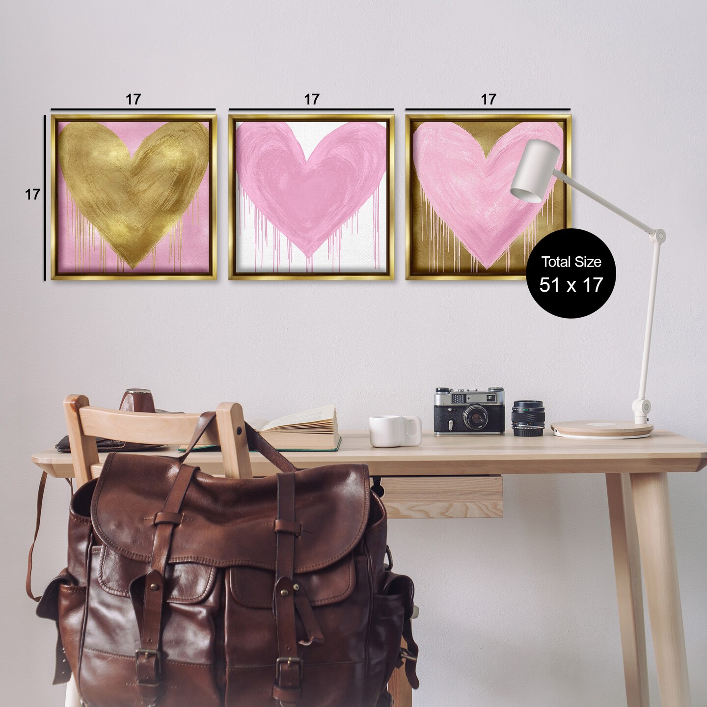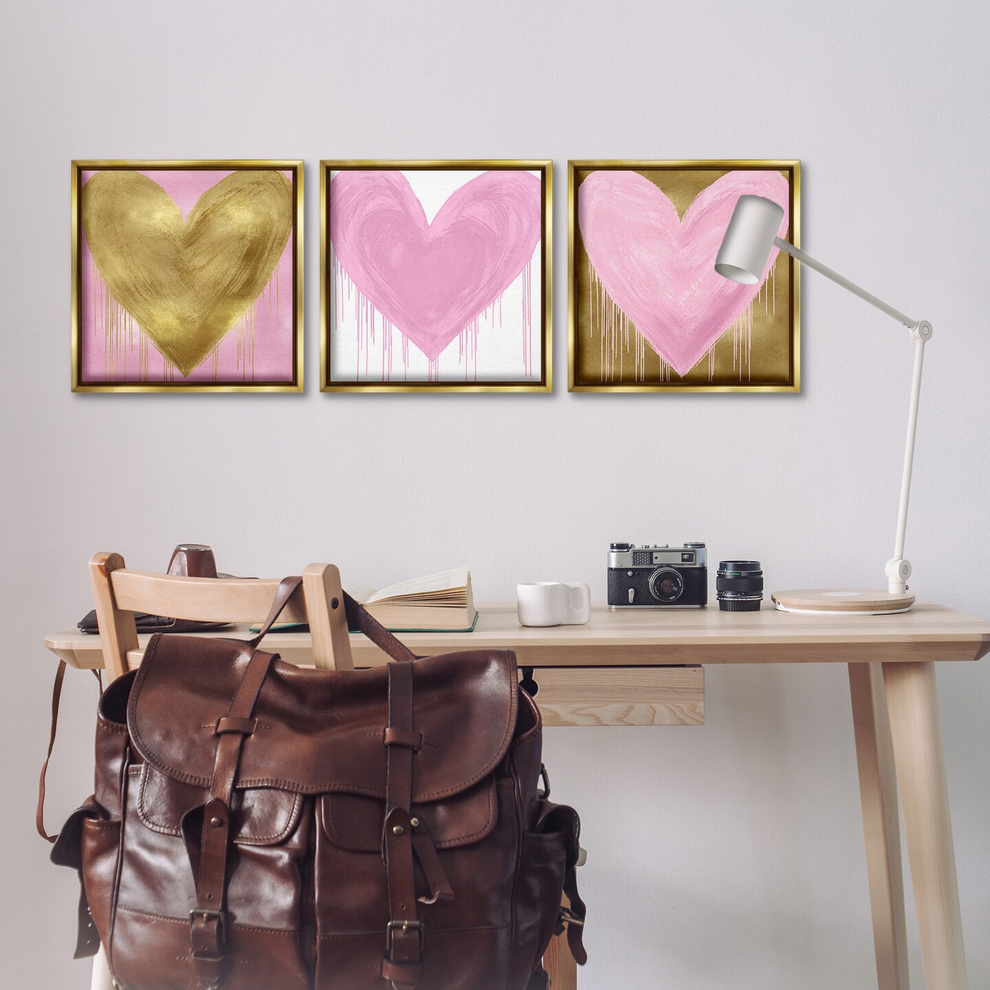 Stupell Industries Glam Paint Drip Hearts Design Framed Floater Canvas Wall Art