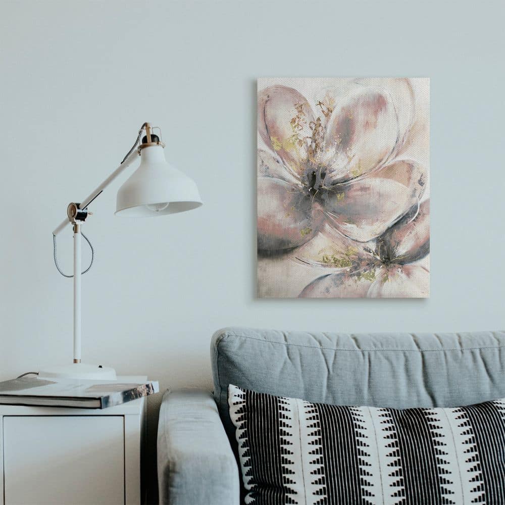 Stupell Industries Glam Pink Beige Flower Petals Floral Gold Painting Canvas Wall Art