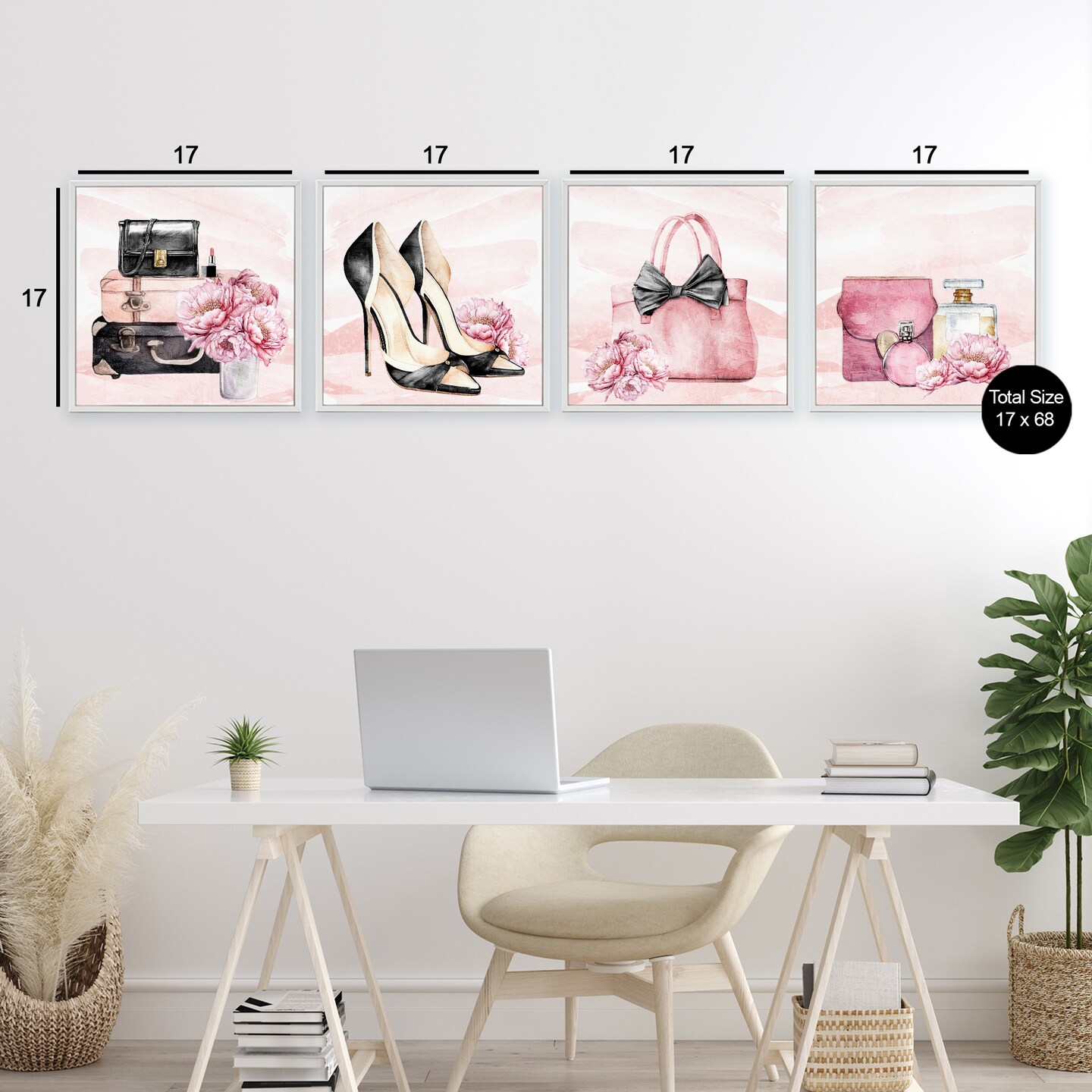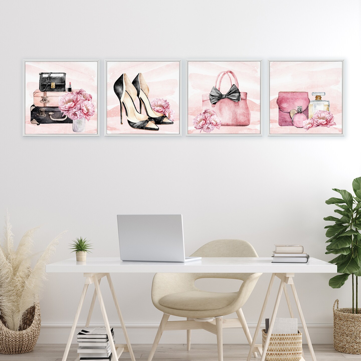 Stupell Industries Glam Time Fashion Items 4pc Framed Giclee Set, design by Kim Allen