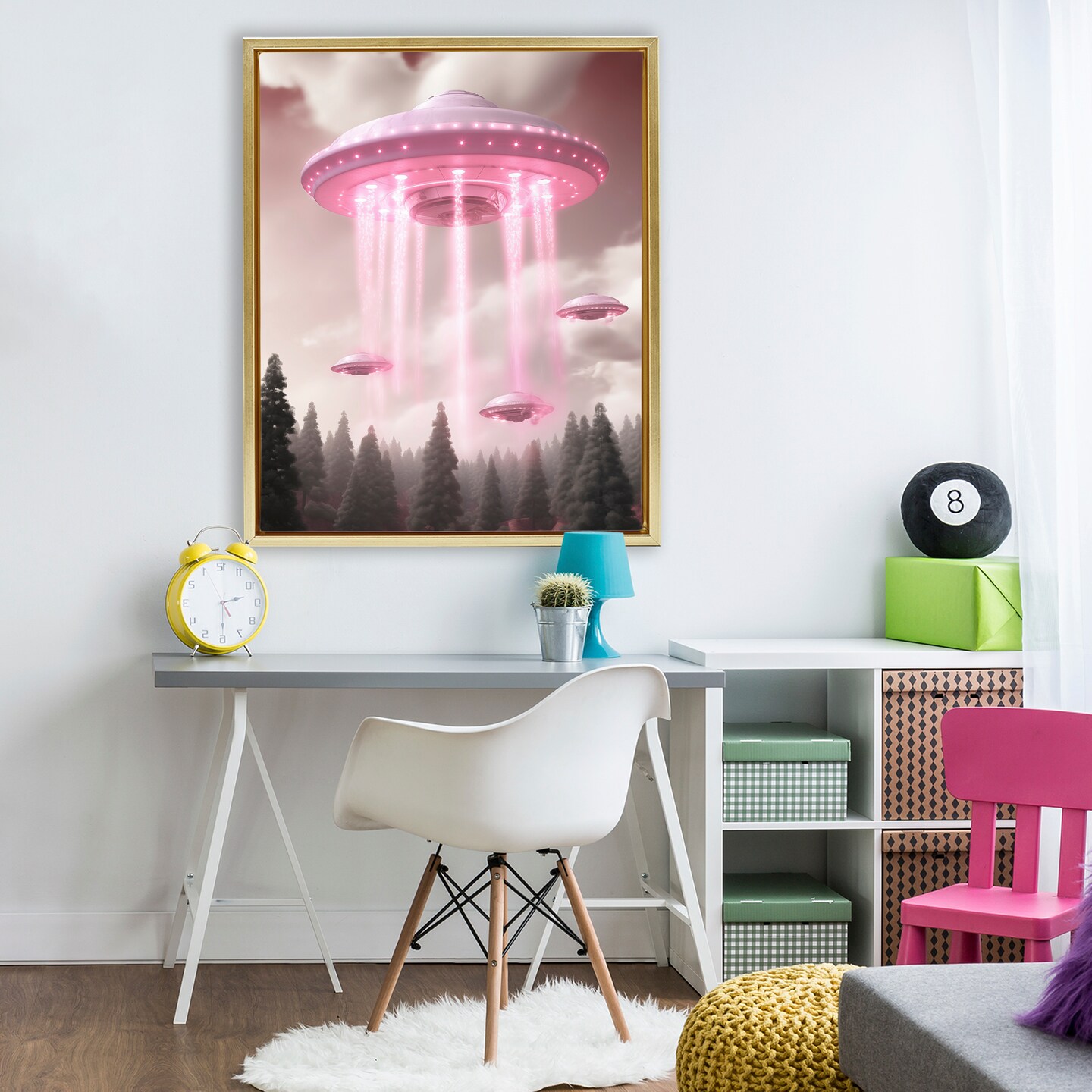 Stupell Industries Glam UFO with Pink Beams Floating Frame, design by Sasha