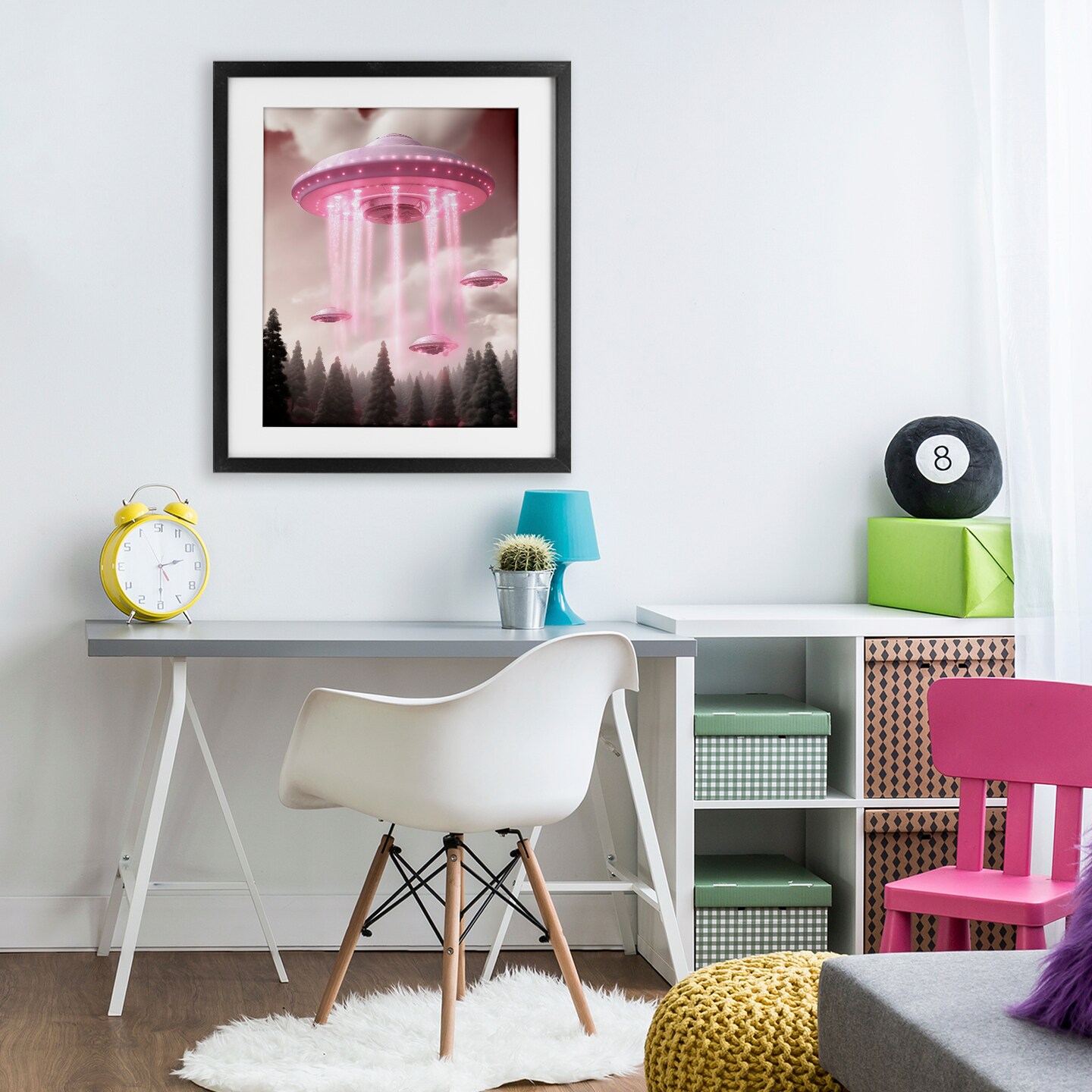 Stupell Industries Glam UFO with Pink Beams Framed Print Under Glass, design by Sasha