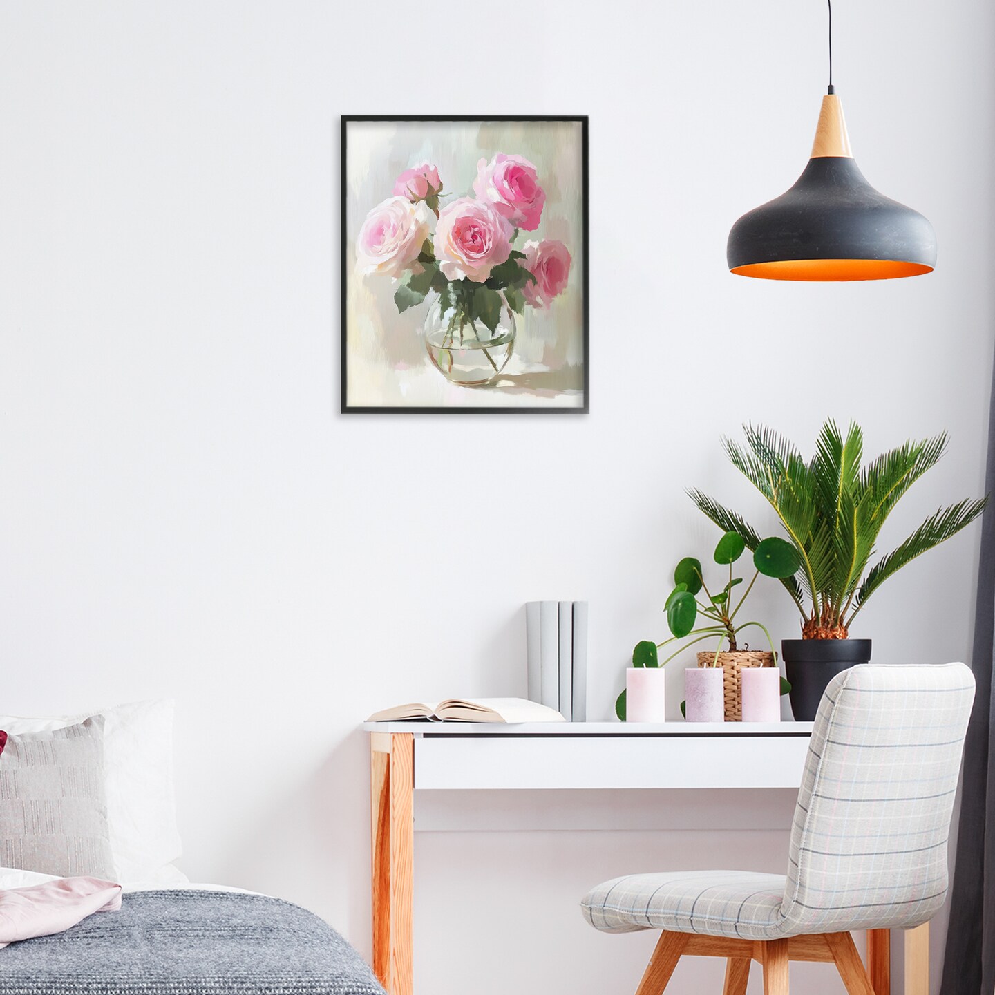 Stupell Industries Glass Vase Pink Roses Framed Giclee, design by Petal Prints Design