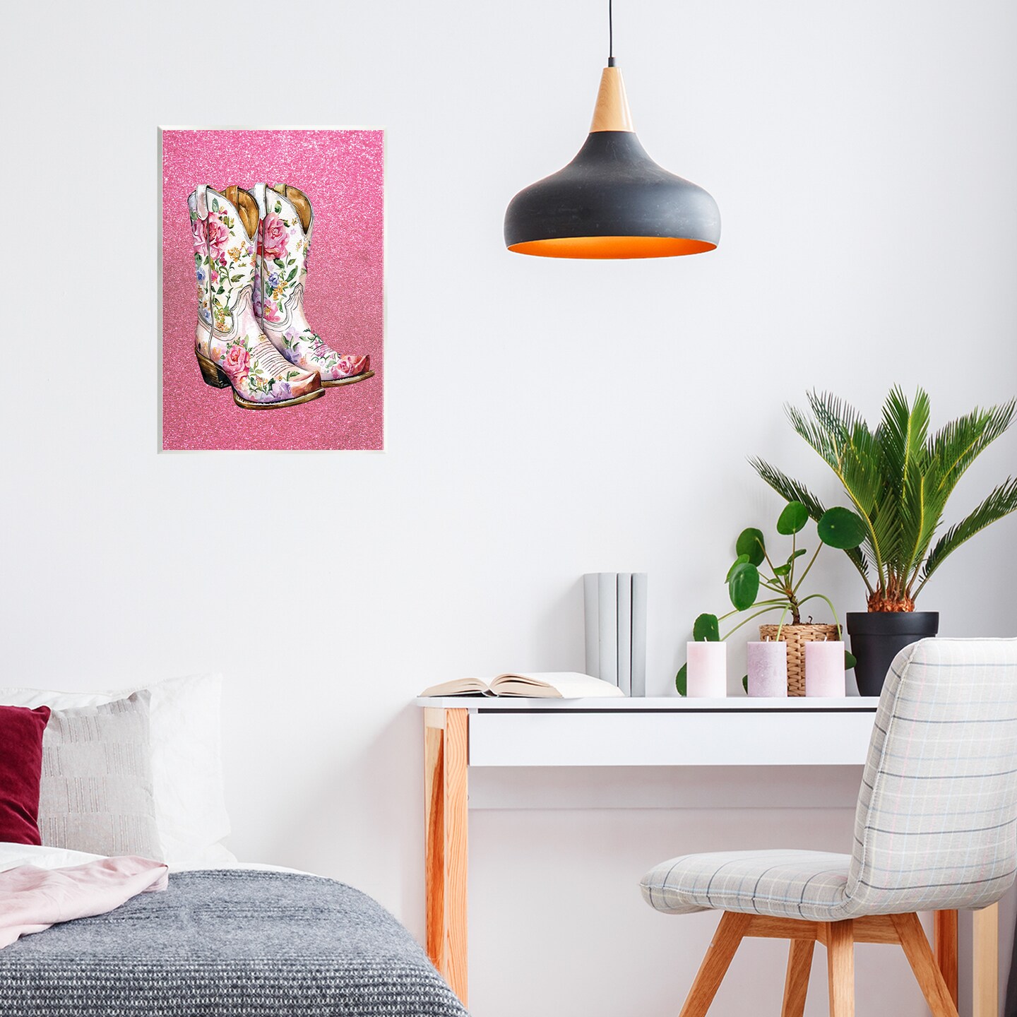 Stupell Industries Gleaming Floral Cowgirl Boots Wall Plaque Art, design by Lettered and Lined