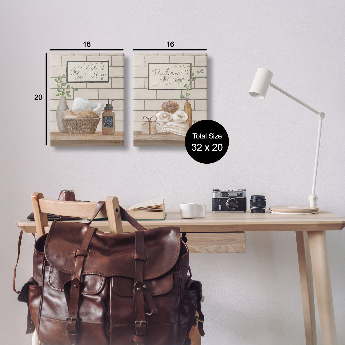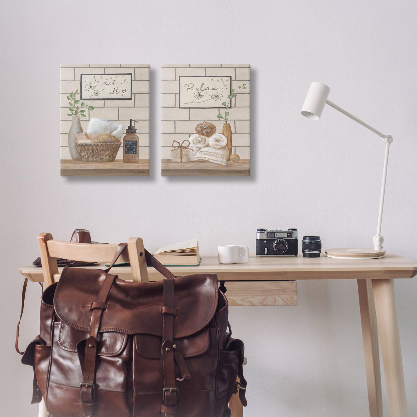 Stupell Industries Go Relax Traditional Bathroom 2 pc Canvas Wall Art Set Design by Pam Britton