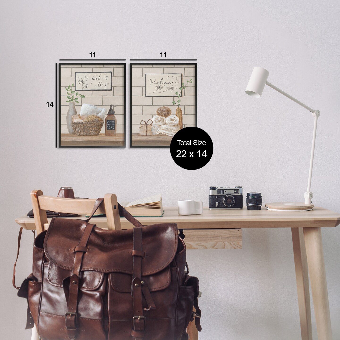 Stupell Industries Go Relax Traditional Bathroom 2 pc Framed Giclee Wall Art Set Design by Pam Britton