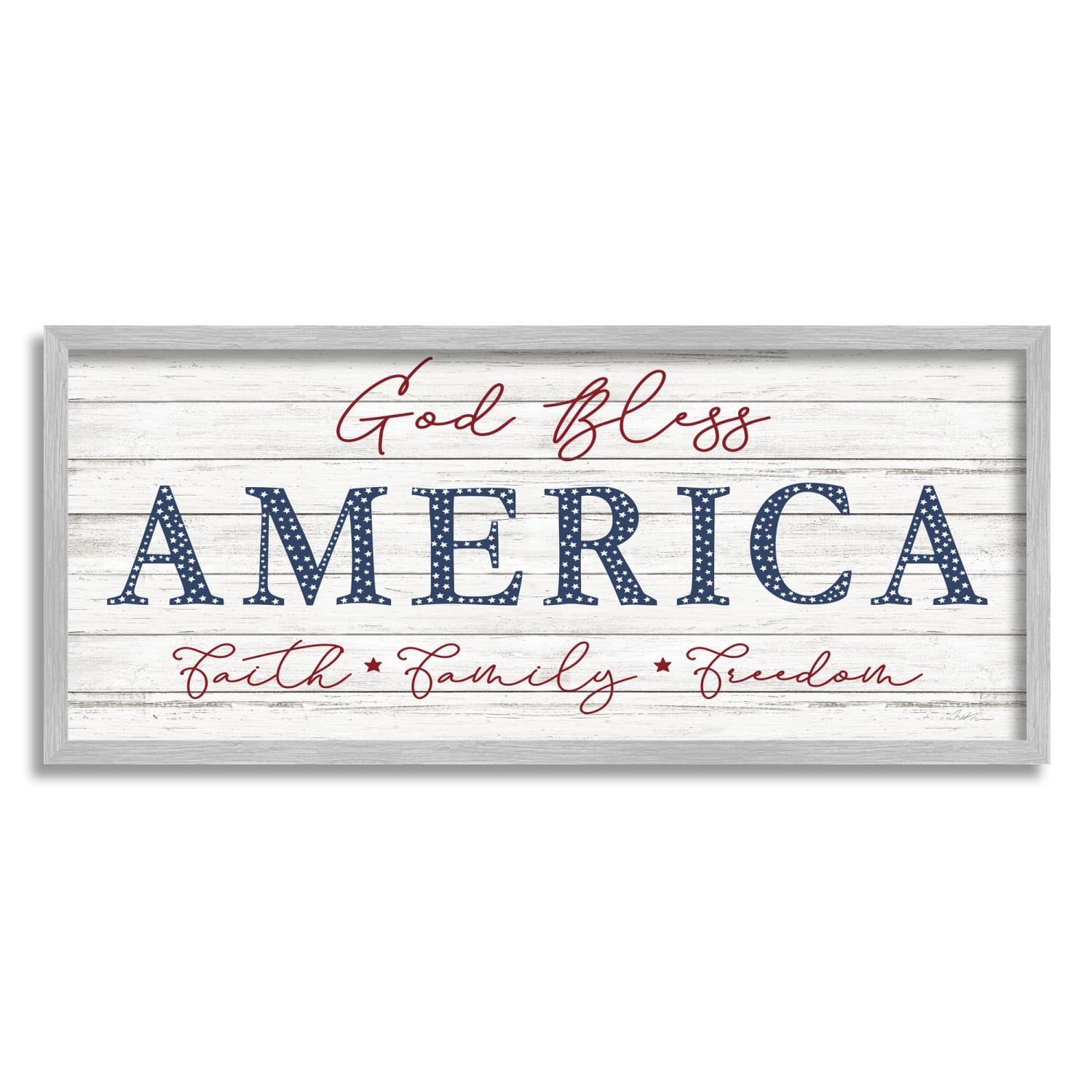 Stupell Industries God Bless America Faith Family Freedom Hanging Sign Framed Giclee Art