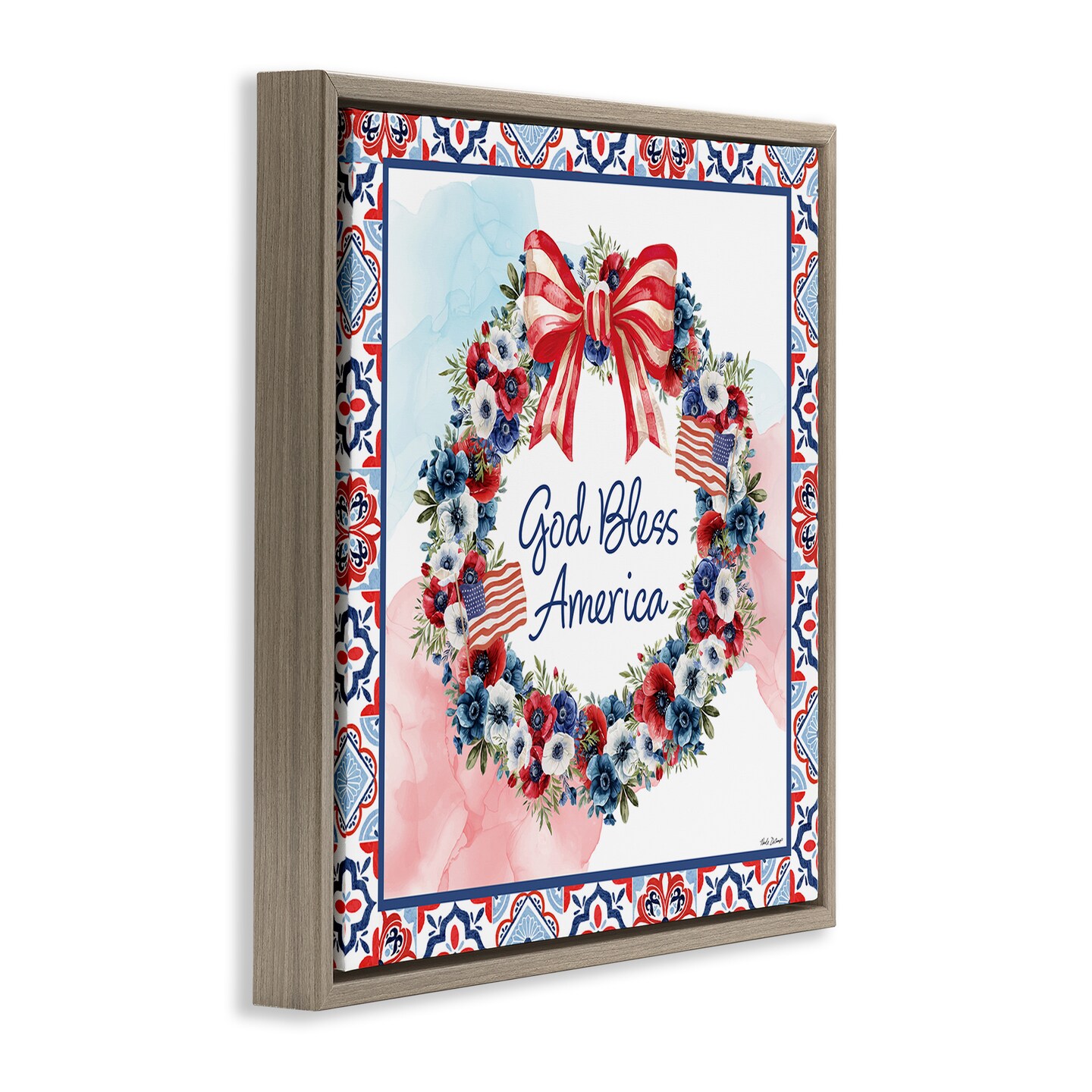Stupell Industries God Bless America Wreath Floating Frame, design by Nicole DeCamp